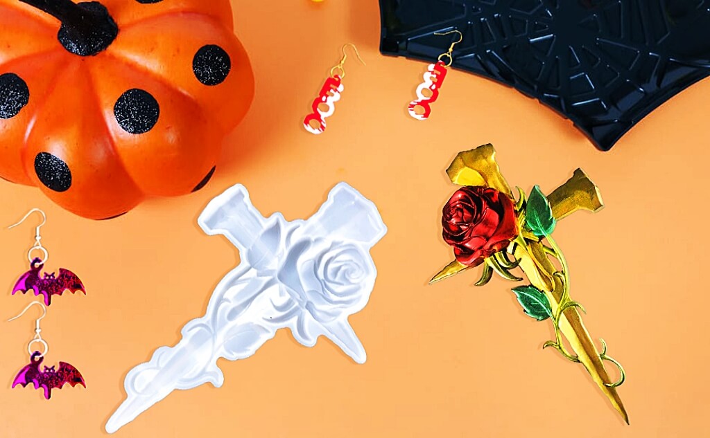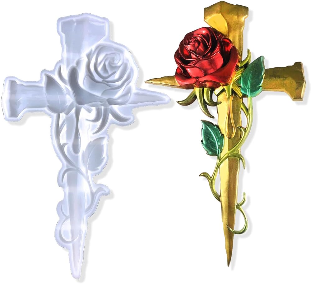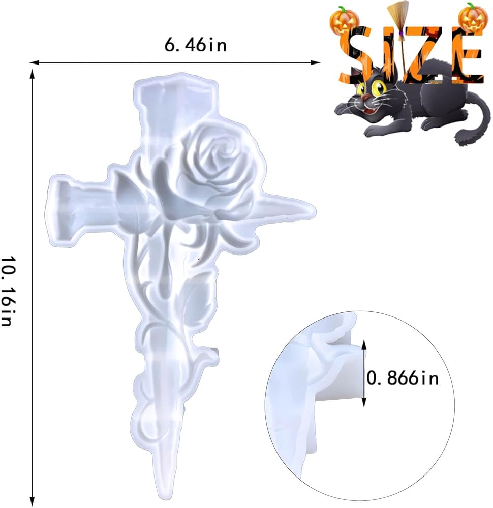🌹♰ 3D Premium Durable Cross Halloween Molds for Resin --- Rose cross mold size: 10.2"x 0.87"x7.95", It takes about 6OZ or a little less of resin to fill. This large silicone molds for epoxy resin is made of food grade silicone material, durable, soft and flexible, not easy to deform, smooth surface and easy to clean.