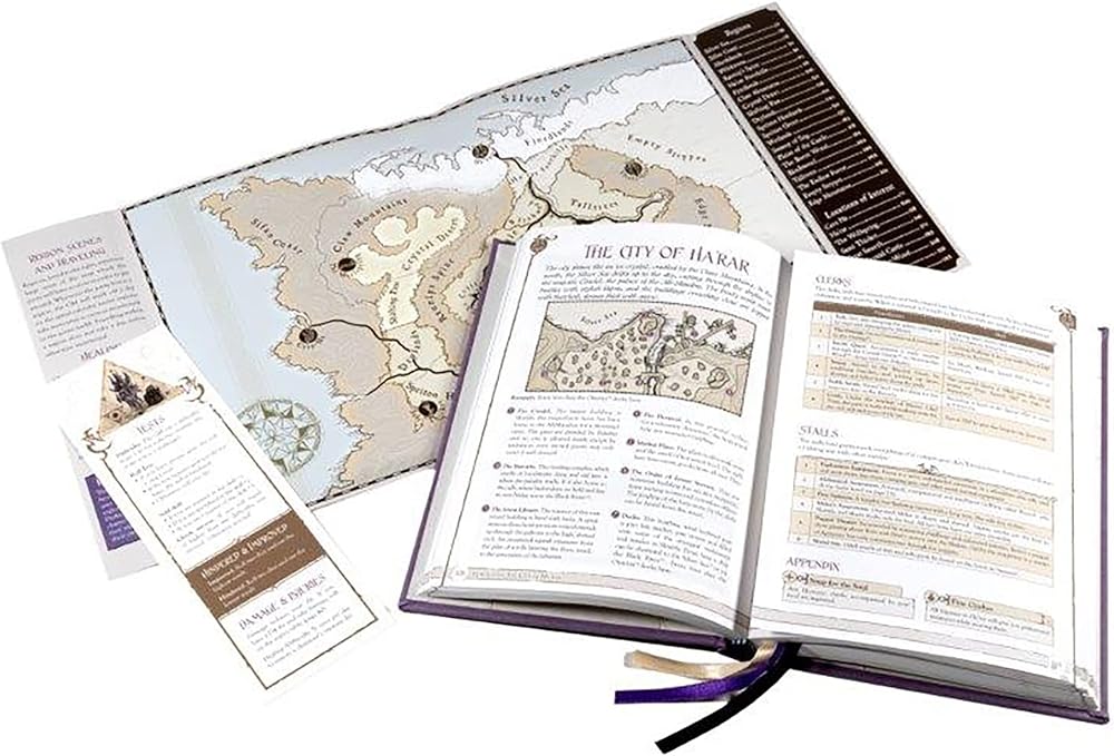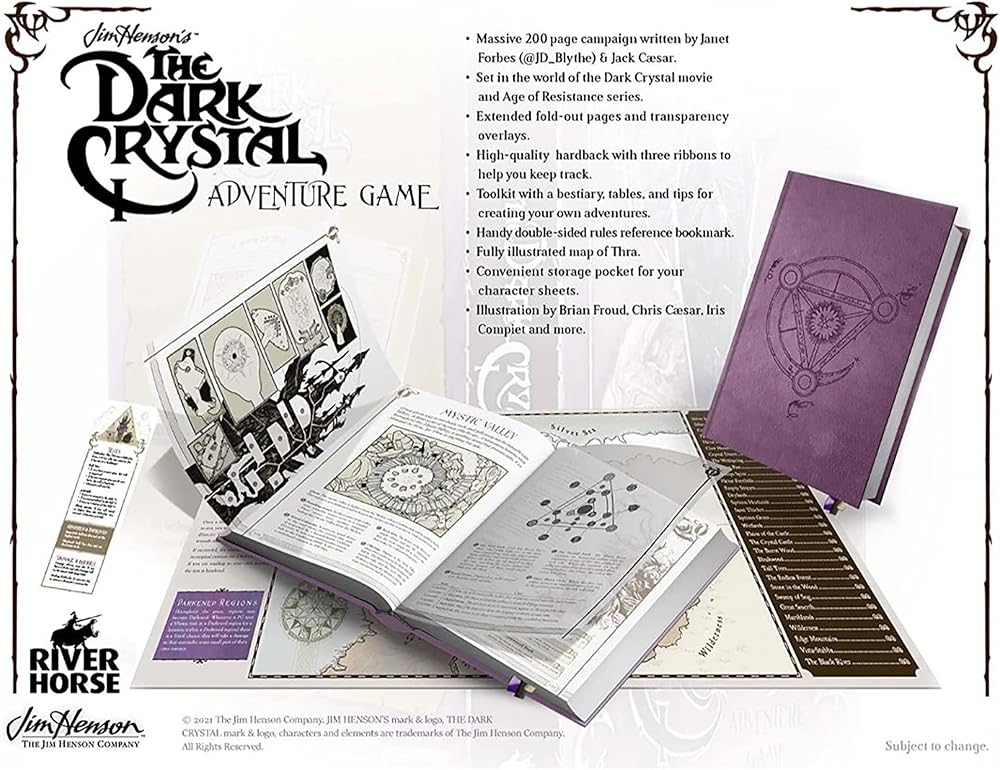 هذه هي لعبة ذا دارك كريستال: ادفنتشر. ستجد في هذه الصفحات كل ما تحتاجه لإنشاء شخصيات جيلفلينج مع أصدقائك والمغامرة في عالم ثرا المذهل والفريد. تحتوي لعبة ريفر هورس Studios The Dark Crystal Adventure على خرائط ومغامرات ونظام قواعد كامل يعد الوافدين الجدد ولاعبي الأدوار الخبراء على حد سواء بساعات من المرح. في هذا الكتاب المقوى (تقريبًا أكثر من 290 صفحة بالألوان الكاملة) سوف تجد: ظهر صلب عالي الجودة مع ثلاثة أشرطة لمساعدتك على تتبع الأنظار. قواعد سهلة التعلم، مثالية للاعب لأول مرة. مغامرة ضخمة من 200 صفحة لتستكشفها مع أصدقائك. صفحات تراكب شفافة فريدة مع معلومات مخفية.