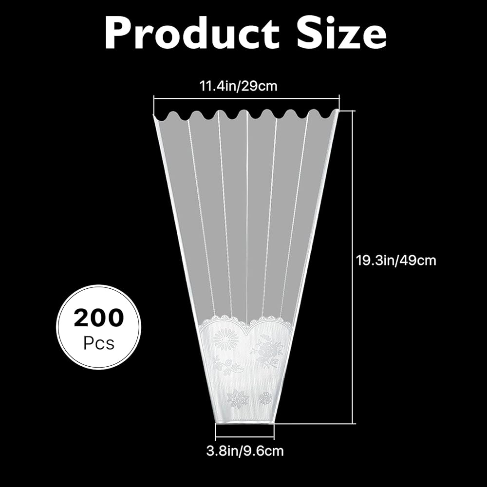 • كمية كافية: تأتي مع 200 قطعة من أكياس باقات الزهور، مما يضمن حصولك على ما يكفي لتغليف الزهور الجميلة الخاصة بك.