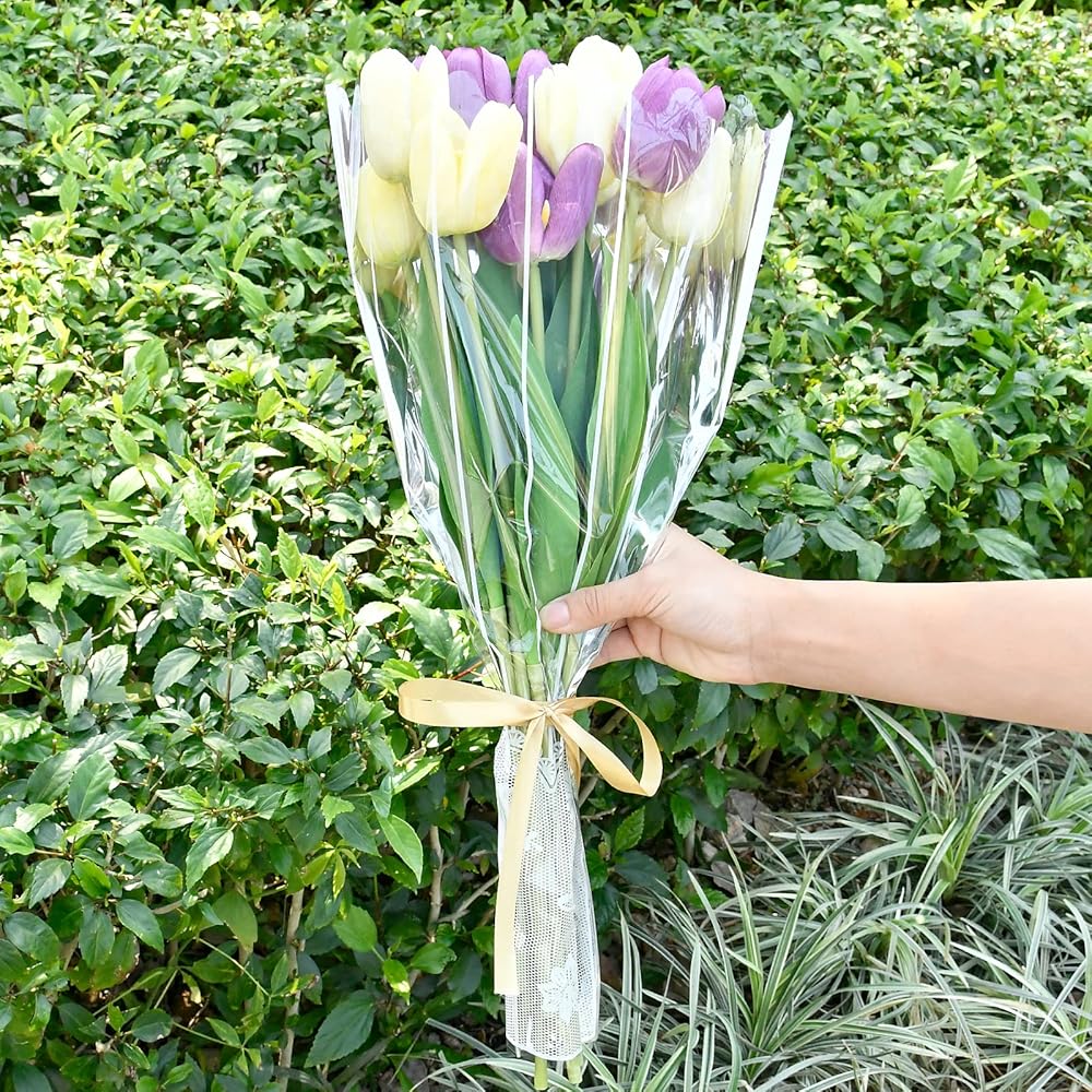 ميلكاري اكياس باقة زهور من 200 قطعة، ورق تغليف بلاستيكي شفاف مع شريط ملفوف لعيد الحب وعيد الام والزفاف واعياد الميلاد والحفلات وحفلات التخرج
