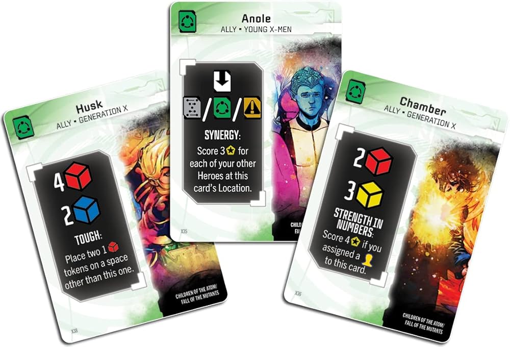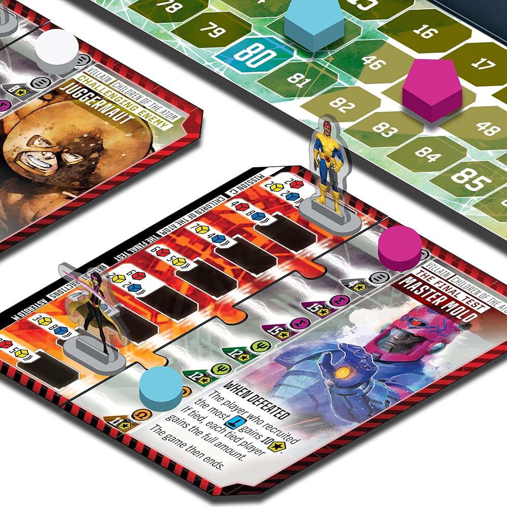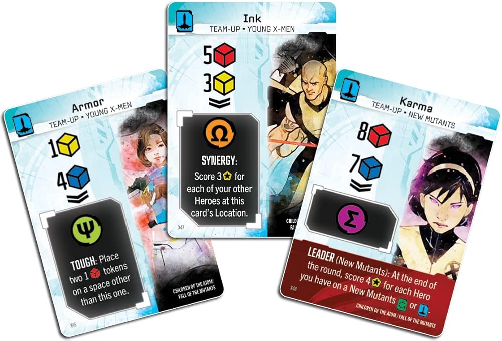 مارفل: ايج اوف هيروز هي لعبة استراتيجية ملحمية يأمر فيها كل لاعب ثنائي من اكس مين الذين يتم إرسالهم لهزيمة الأشرار والأهداف الكاملة. سيقوم فريقك بجمع الموارد والطاقة قبل الشروع في مهام خطرة في مجموعة متنوعة من السيناريوهات الفريدة والصعبة. ينسج رودني طومسون، المصمم المشارك لوردز اوف ووترديب، الموضوع والاستراتيجية معًا من خلال مزيج من التنسيب المتحول وإدارة الموارد. سيقوم الفريق الأكثر فاعلية بإدارة مهاراتهم وتدريب المسوخ والتفوق على المنافسة في مرحلة المعهد والمهمة. تعمل السيناريوهات والقدرات غير المتماثلة والقدرات الجديدة وظروف التسجيل على توفير إمكانية لعب غريبة! يتم تمثيل أبطال اللاعبين بمجموعة من حوامل الأكريليك المذهلة بالألوان الكاملة. تتضمن الفرق الشخصيات المفضلة لدى المعجبين مثل ولفيرين اند جوبيلي وجان جراي وسيكلوبس وفورج اند ستورم والمزيد! تتميز البطاقات ولوحات اللاعبين بتأثير فني رائع لمنظر الأحلام كما لو أن تليباث قوي يراها من خلال سيريبرو. مرحلة المعهد: سيرسل اللاعبون أبطالهم إلى أماكن العمل مثل غرفة الخطر أو الخليج الطبي للحصول على مزايا مختلفة. تتيح لك بعض مساحات الحركة على لوحة المعهد زيادة مساراتك البدنية والعقلية وقوة الإرادة، بينما يسمح لك البعض الآخر برسم البطاقات أو اللعب أو تغيير ترتيب الدوران. بالإضافة إلى ذلك، على مدار اللعبة، ستدخل بطاقات الي حيز التنفيذ لتكشف عن إمكانيات عمل جديدة. بدلاً من أداء الإجراءات في المعهد، يمكن إرسال الأبطال إلى اكس جيت لمواجهة تحديات مرحلة المهمة. مرحلة المهمة: هذا هو المكان الذي سيخضع فيه اللاعبون فرقهم للاختبار! أرسل أبطالك إلى لوحة المهمة أو نقطة الاستخراج حيث ستستخدم الموارد والمهارات والقوى التي جمعتها لمواجهة الأشرار مباشرة أو للتعاون مع شخصيات أخرى للحصول على ضربات أكثر فعالية. يقدم كل سيناريو تحديات مختلفة تمامًا، حيث تواجه سينتينلز وماغنيتو وحتى نهاية العالم! يمكن أن تغير السيناريوهات تكوين مجموعة المعهد، مما يخلق قصة موضوعية غنية. تتميز المجموعة بالعشرات من شخصيات اكس مين الشهيرة والفعاليات المتوفرة من خلال السوق المشتركة. سيتنافس اللاعبون لجمع الأبطال الأكثر فائدة لاستراتيجياتهم والتأثير عليهم. مع تطور اللوحة والسيناريوهات، ستفعل شخصياتك أيضًا. تضيف بطاقات التطور الخاصة قدرات جديدة وظروف تسجيل الأهداف. بالإضافة إلى بطاقات التطور الفريدة، يتمتع كل فريق بموارد بدء مختلفة وقدرات غير متماثلة في الوضع المتقدم مما يجعل التنوع العالي والقدرة على إعادة اللعب!