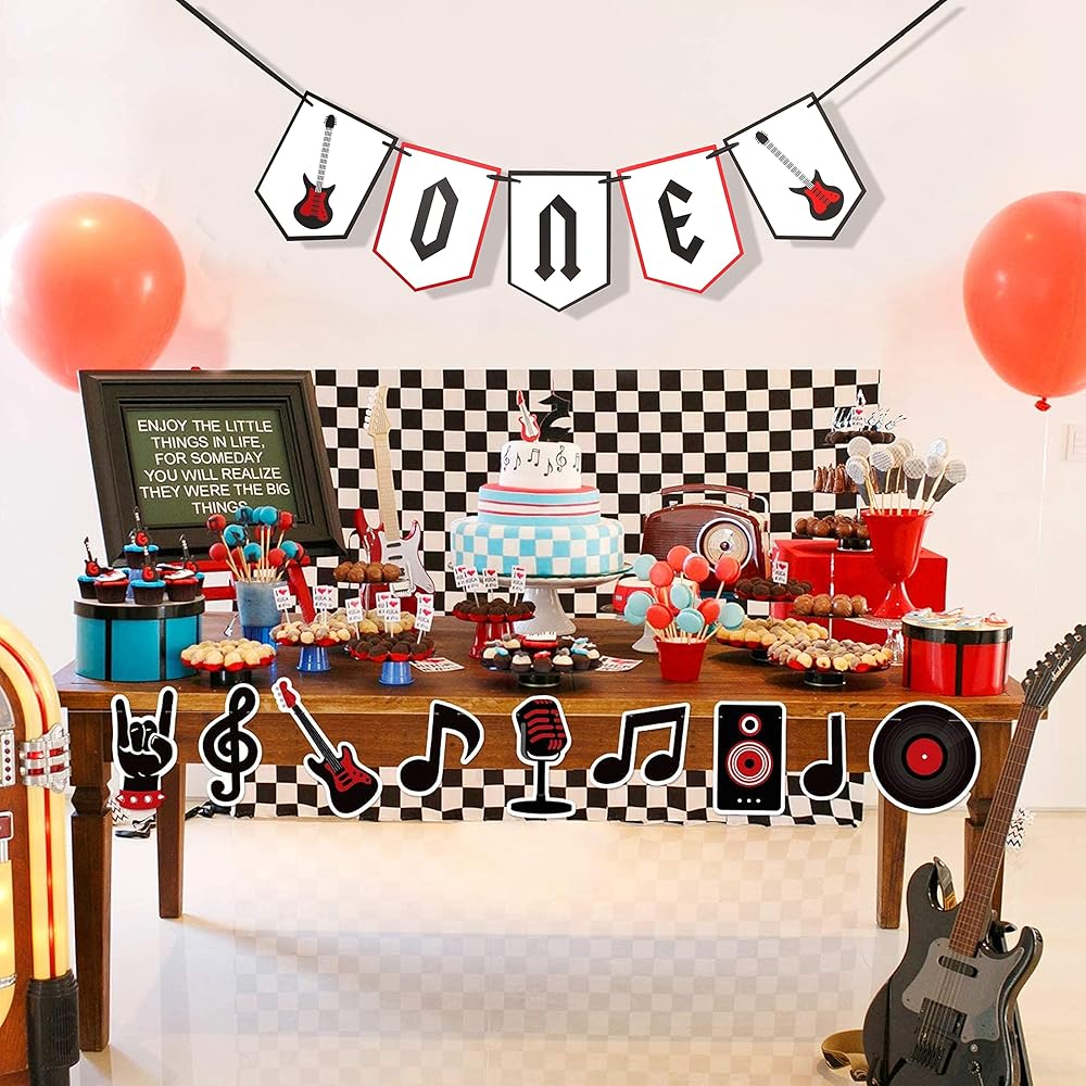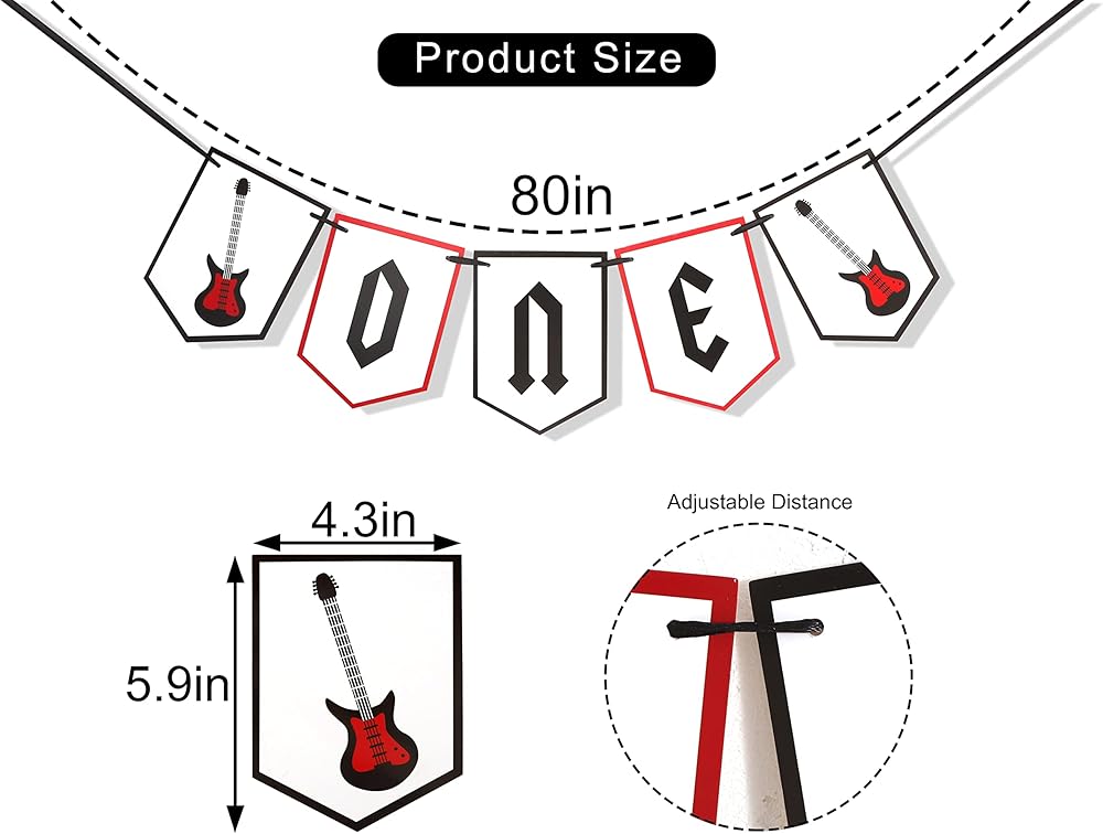 لافتة كرسي مرتفع من One Rocks - زينة عيد الميلاد الأول من Rock N Roll، لافتة كرسي مرتفع على شكل جيتار، عيد ميلاد Rock N Roll الأول، ديكور حفل عيد الميلاد الأول على الجيتار
