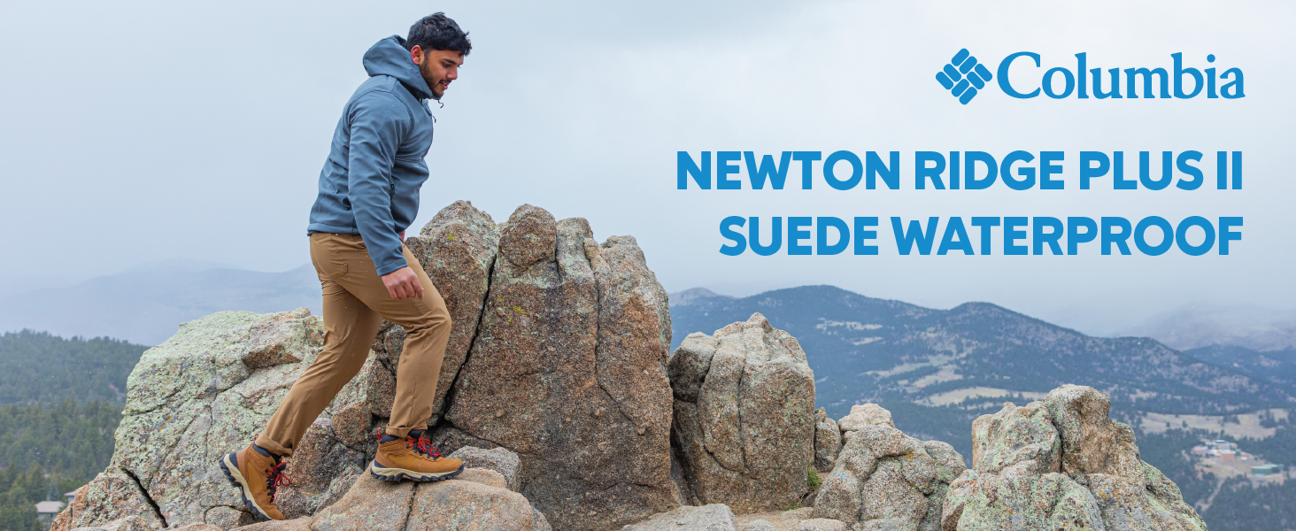 حذاء Newton Ridge Plus II للرجال من Columbia للمشي لمسافات طويلة مقاوم للماء من الجلد السويدي - - 13 Wide