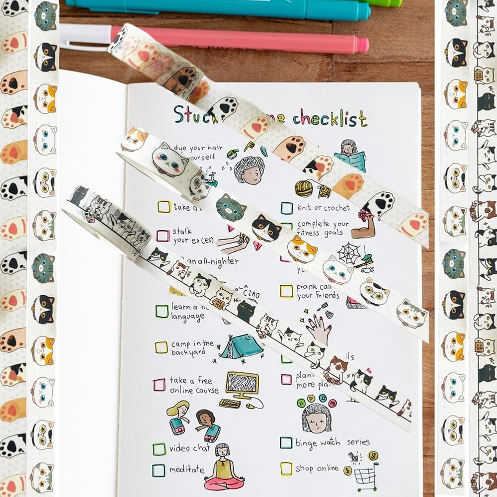 These washi tapes are not your ordinary adhesive tapes; they are a fusion of art and functionality. With a width of 15 mm, they strike the perfect balance between precision and impact, allowing you to use them for a wide range of crafting applications. Whether you're scrapbooking, journaling, card-making, or decorating, these tapes are your go-to tool for adding a touch of feline whimsy to your creations.
