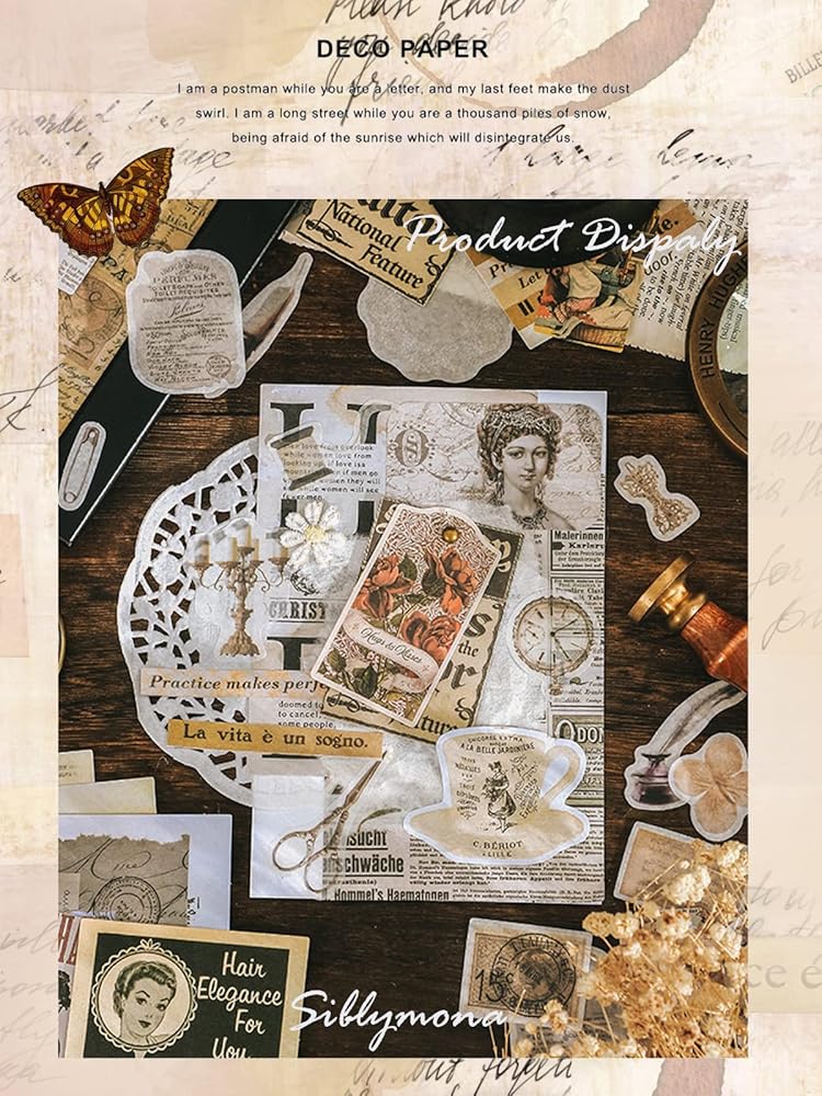【لوازم سجل القصاصات الممتازة】-- هذه لوازم سجل القصاصات العتيقة مصنوعة من مواد عالية الجودة، ومطبوعة بوضوح، ومتينة ولا تبهت. يمكن استخدامها على أي سطح جاف ونظيف وناعم. إنها مثالية لتزيين دفاتر القصاصات والمجلات غير المرغوب فيها وأجهزة الكمبيوتر المحمولة وبطاقات المعايدة والمذكرات والدفاتر والأكواب وصناديق الهدايا لجعل أغراضك أكثر حيوية.