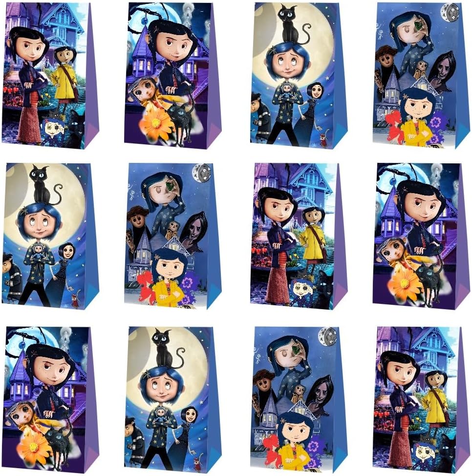 12pcs Coraline Party Favor Gift Bags, Coraline Birthday Party Supplies for Coraline Party Decorations