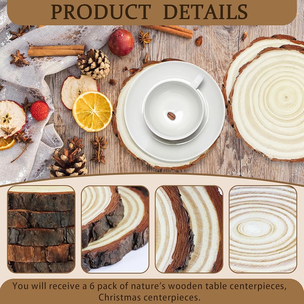 شرائح خشبية كبيرة: سوف تحصل على 6 قطع مركزية خشبية طبيعية للطاولات، زينة مركزية لعيد الميلاد.