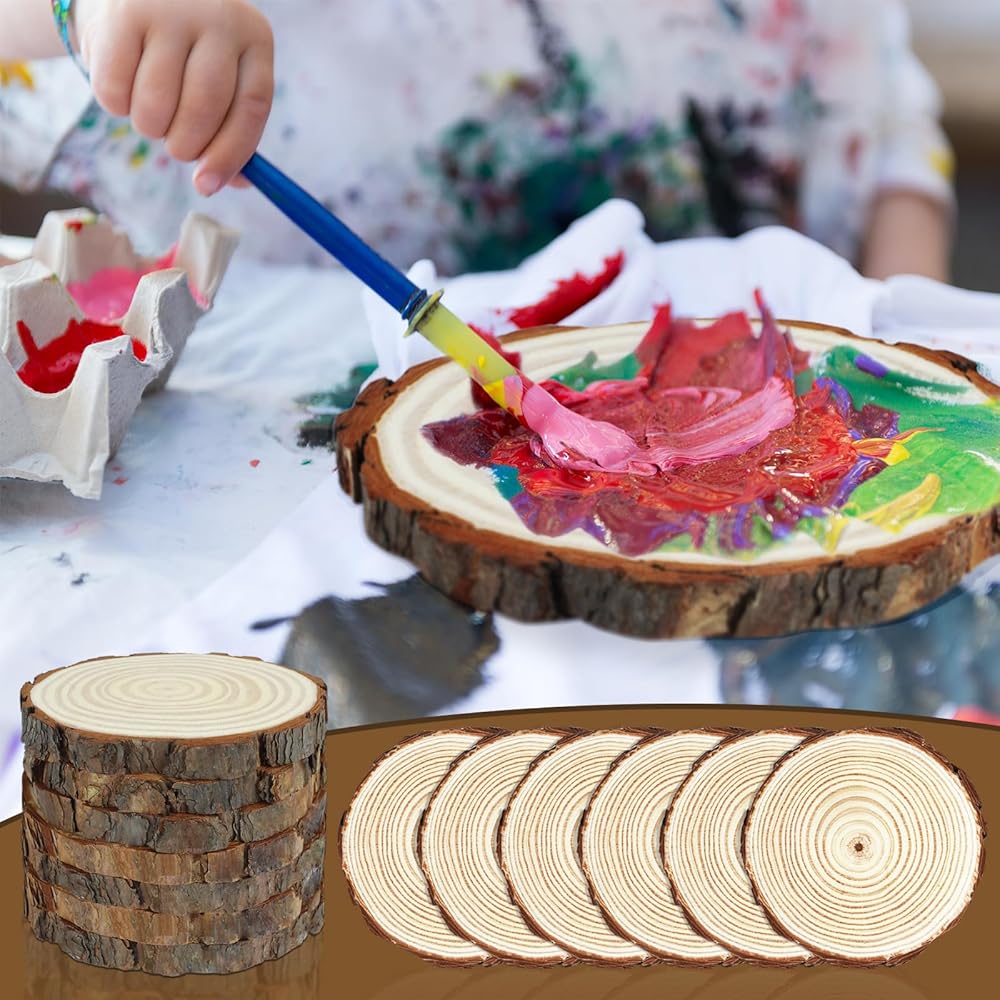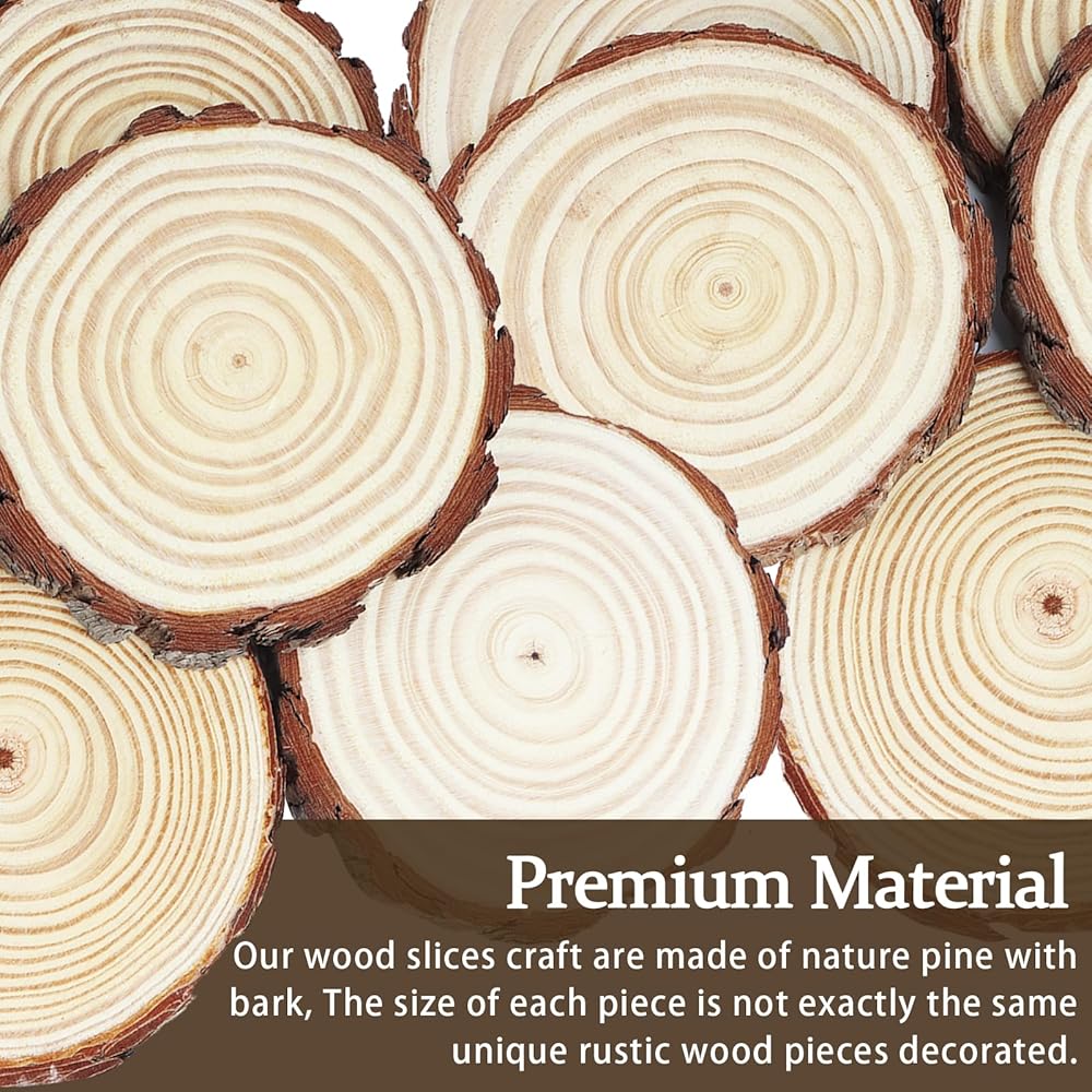 مادة فاخرة: شرائح الخشب الخاصة بنا مصنوعة من خشب الصنوبر الطبيعي مع اللحاء، حجم كل قطعة ليس هو نفسه بالضبط، قطع خشبية ريفية فريدة من نوعها.