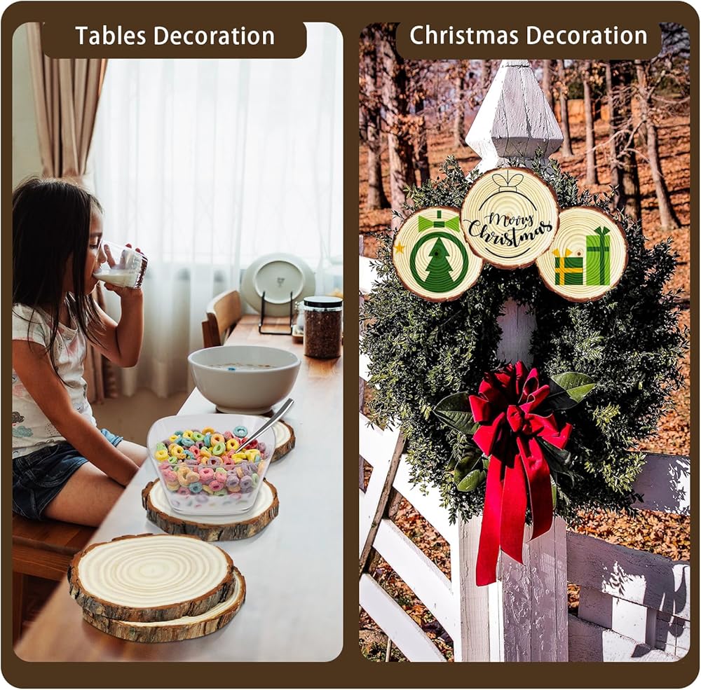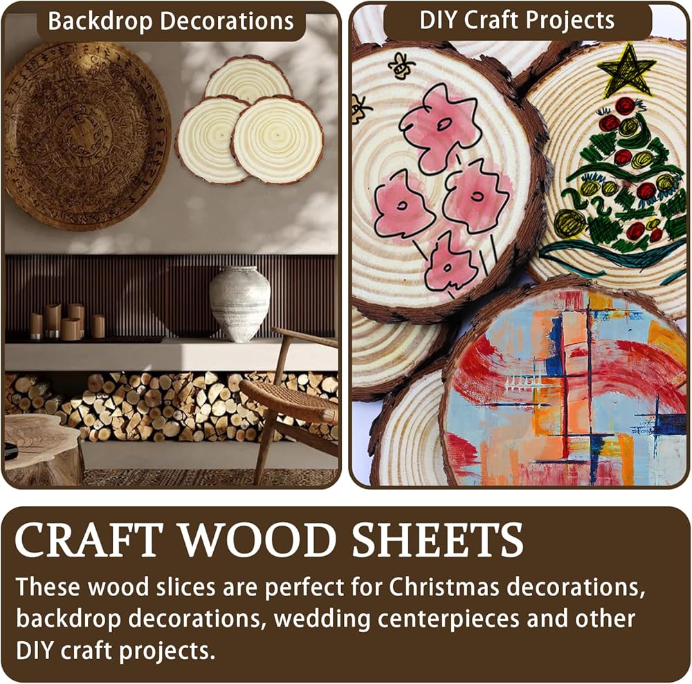 شرائح خشبية للحرف اليدوية: هذه الألواح الخشبية مثالية لتزيين الكريسماس وتزيين الجدران الخلفية وتزيين قطعة الزفاف المركزية وغيرها من المشاريع الحرفية التي تصنعها بنفسك.