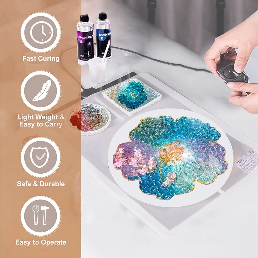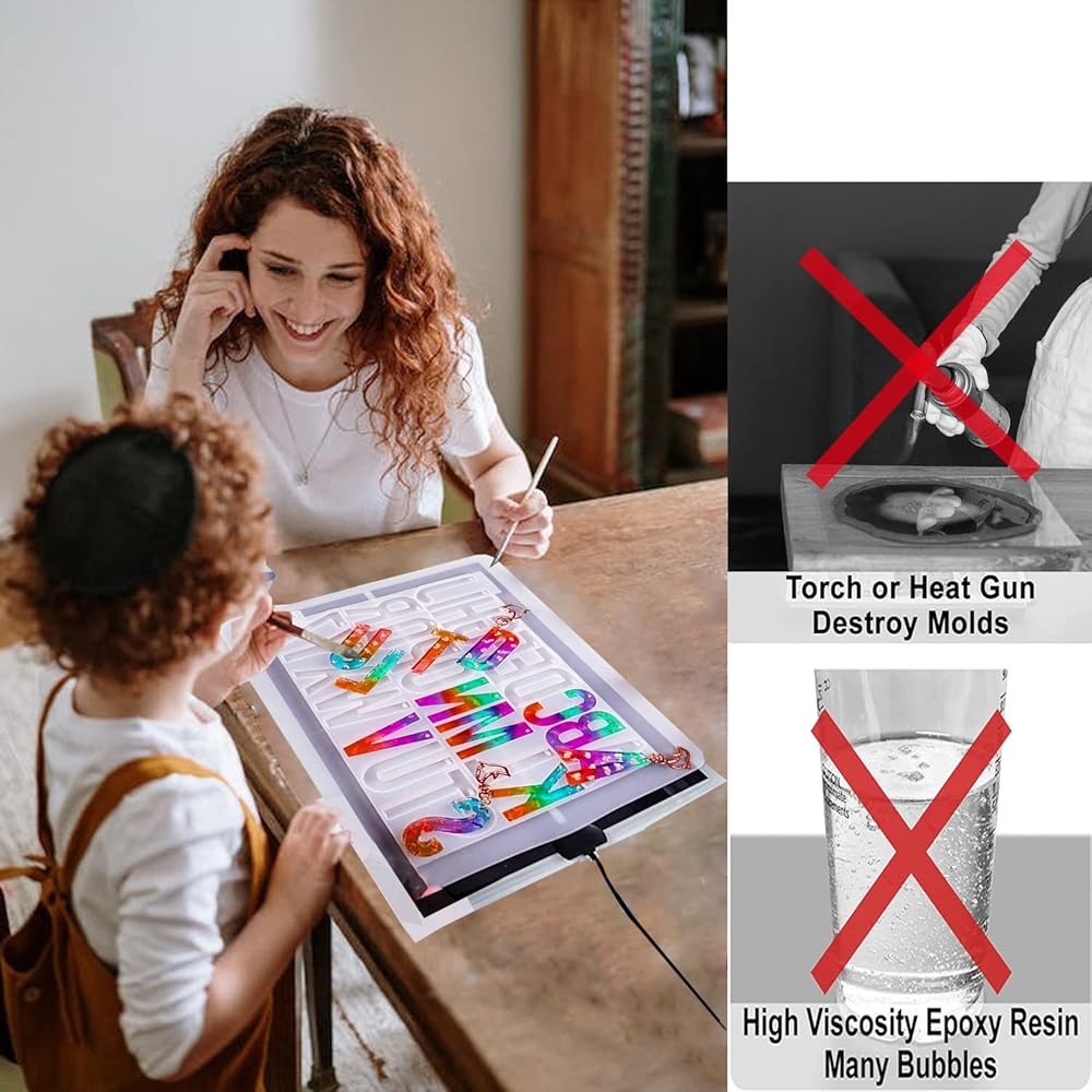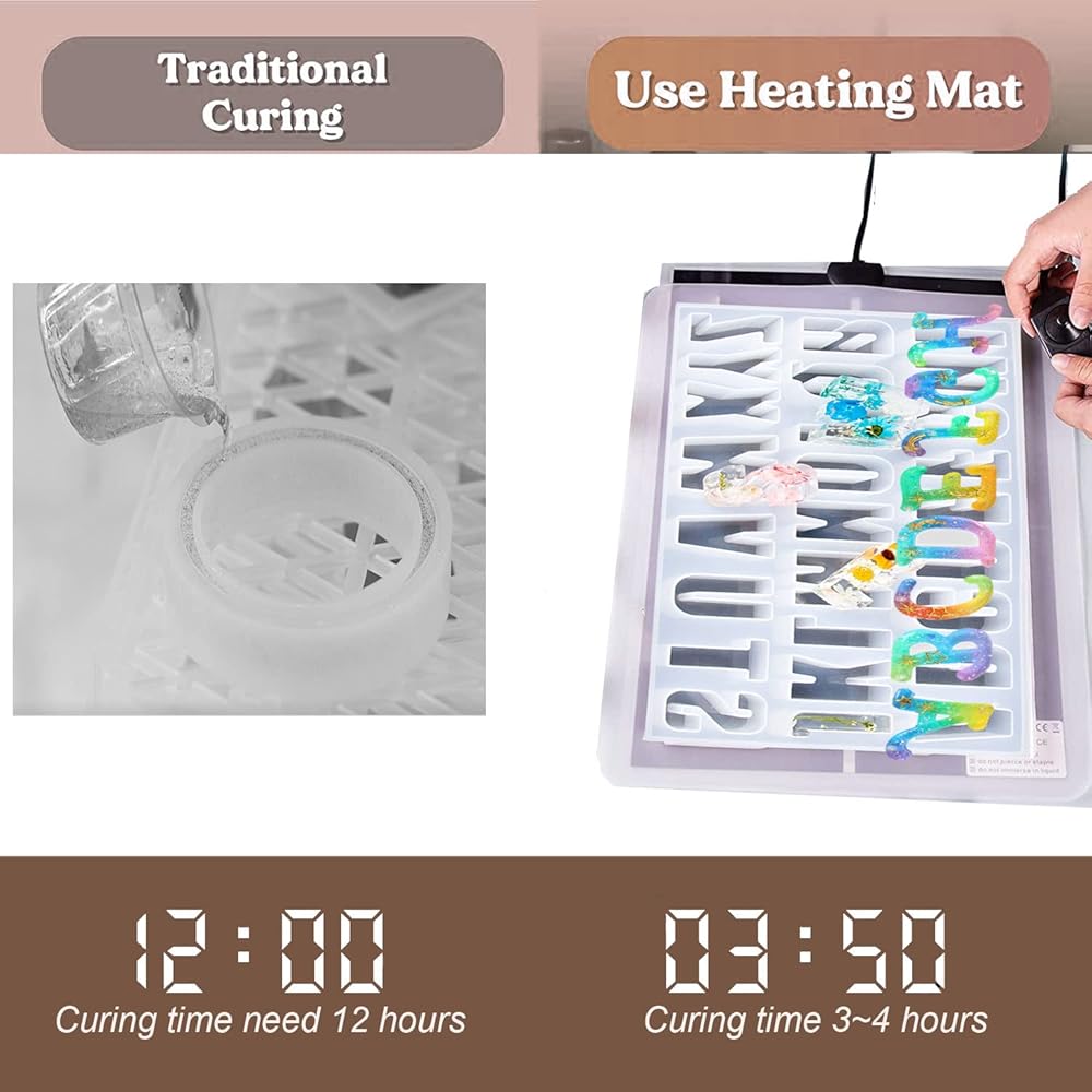 【وسادة سيليكون】وسادة السيليكون مقاس 15.5 انش × 11.6 انش مجهزة خصيصًا في مجموعة وسادة المعالجة المصنوعة من الراتنج، ضع وسادة السيليكون على وسادة المعالجة المصنوعة من الراتنج للحفاظ على الدفء ومنع الايبوكسي من الالتصاق بلوحة التسخين. وسادة السيليكون كبيرة جدًا ويمكن استخدامها في وقت واحد حيث تعالج قوالب قواعد الأكواب المتعددة أو قالب واحد بمساحة كبيرة. يمكنك أيضًا استخدام وسادات السيليكون وحدها في سيناريوهات أخرى للحفاظ على نظافة مكتبك.