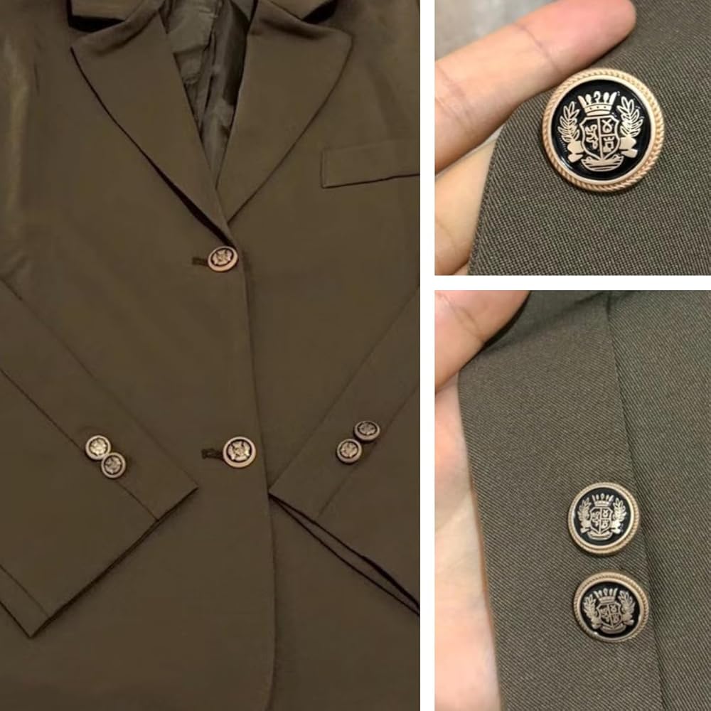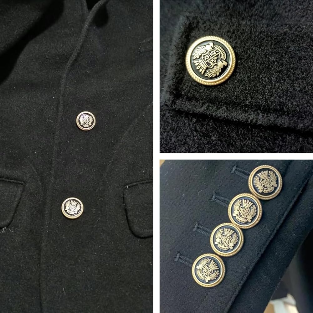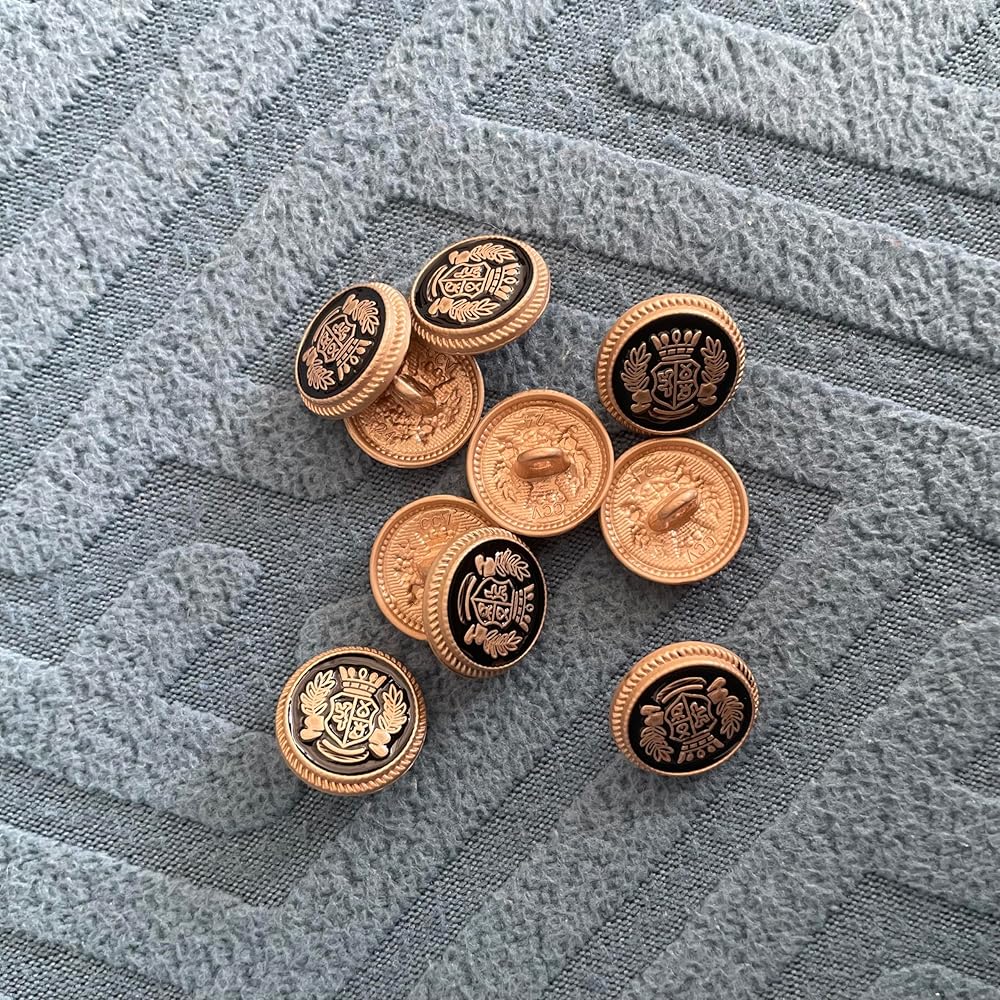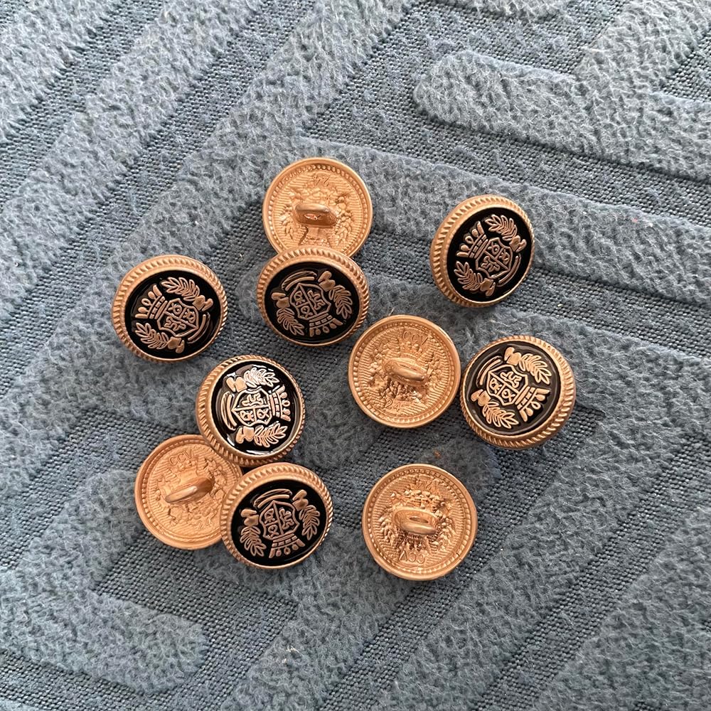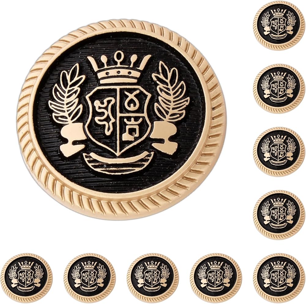 • 1. ارتقِ بلعبة البليزر الخاصة بك مع أزرار الذهب الأسود العتيقة الخاصة بنا للبليزر! مصنوعة من خليط معدني من الزنك عالي الجودة، هذه الأزرار الأنيقة والصديقة للبيئة هي إضافة لا غنى عنها لخزانة ملابسك.