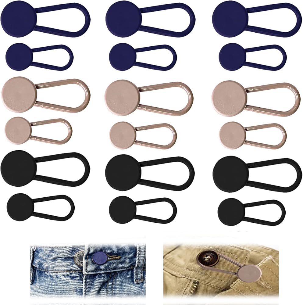 ✔【سهلة الاستخدام】- لا حاجة للخياطة، ما عليك سوى وضع موسع العروة فوق الزر الأصلي وربط الطرف الآخر بفتحة الزر لحل مشكلة الخصر الضيق بسهولة. يعمل موسع العروة المرن على تمديد محيط خصر بنطالك للحصول على محيط خصر أكثر راحة.