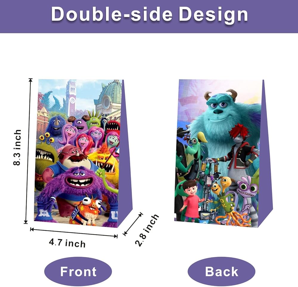 【ليس من السهل تمزيقها】: حقائب Monsters University الجيدة قوية بما يكفي لحمل الألعاب والبسكويت والحلوى وأي هدايا أخرى. مشرقة ومتينة. لطيفة على طاولة الحفلات.