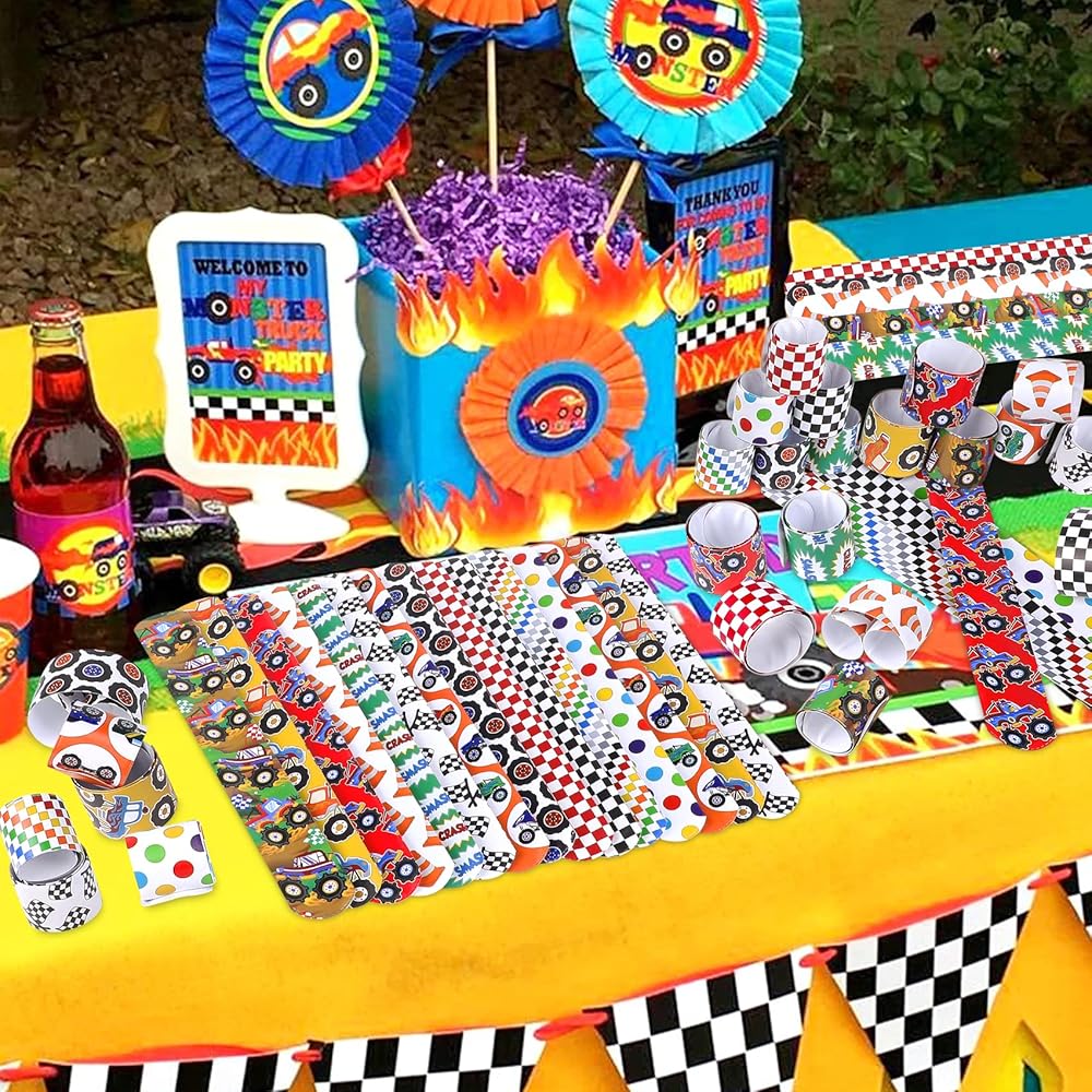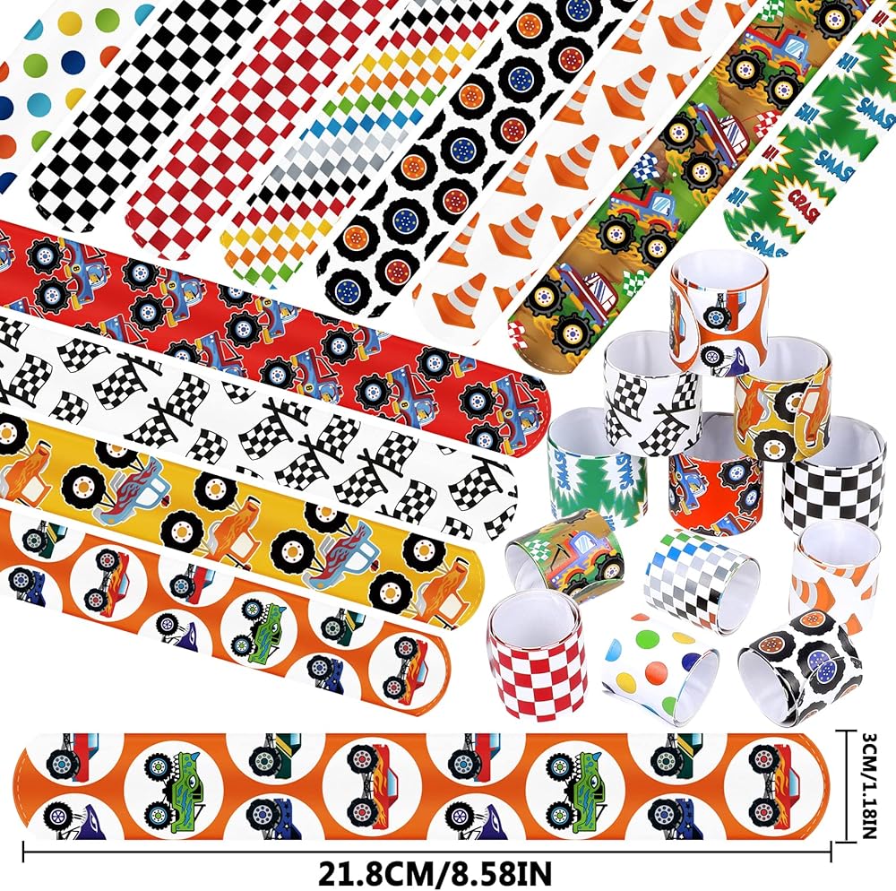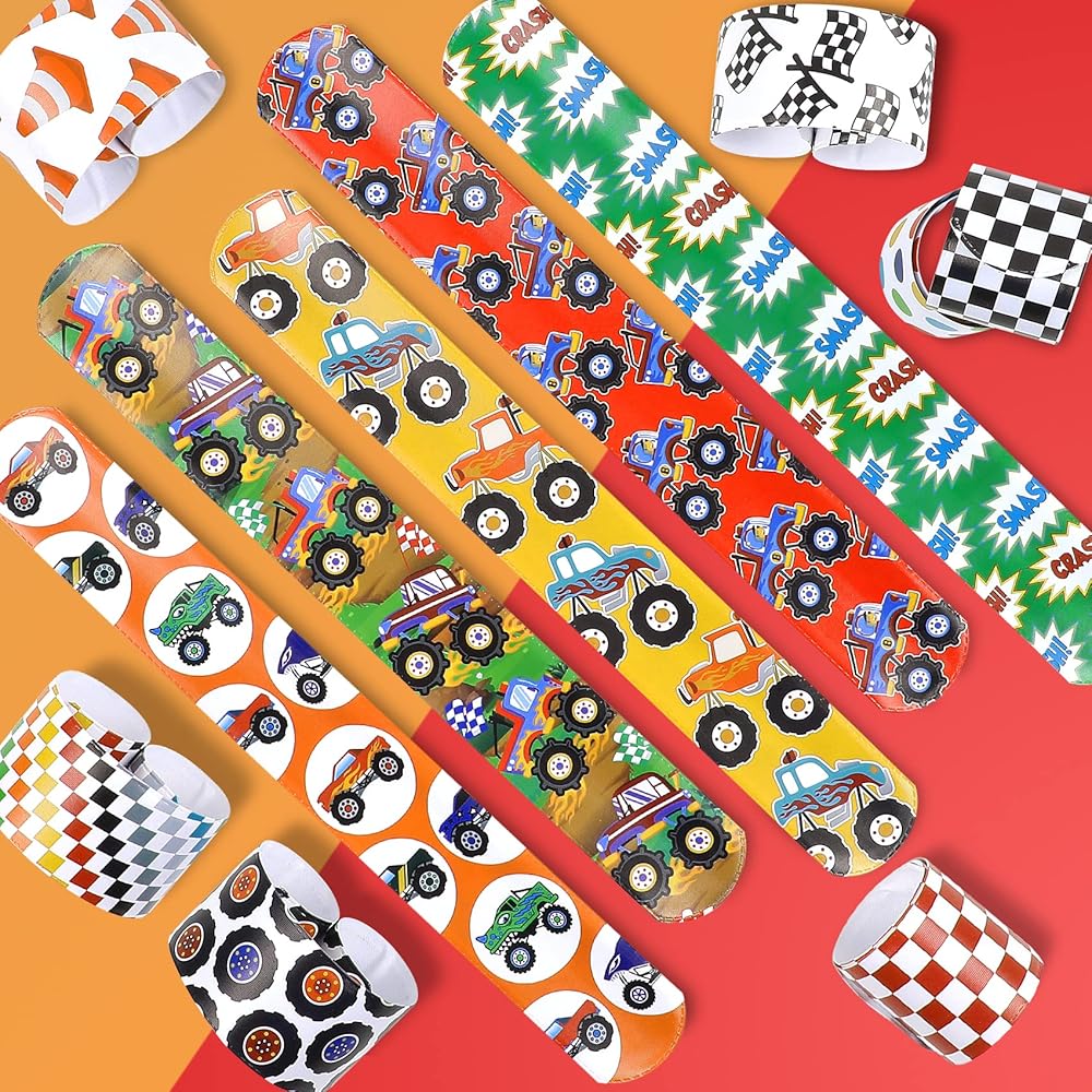 نمط متنوع - تتضمن مجموعة هدايا الحفلات من Monster Trucks 48 قطعة سوار بدوران مع 12 تصميمًا مختلفًا.