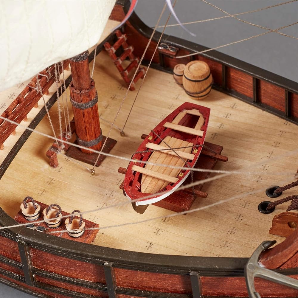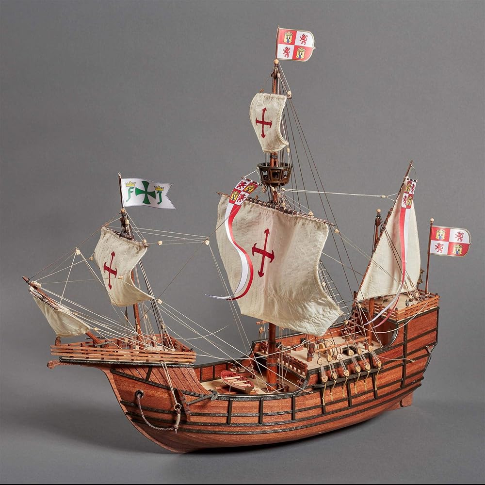 Once the wooden model of the Caravel Santa María has been built, its dimensions are as follows: length 50.3 cm x height 49.8 cm x width 26.4 cm.