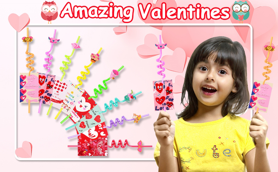 【حجم مثالي وتصميم مميز】- يبلغ طول كل واحدة من المصاصات البلاستيكية لدينا 10.6 بوصات ويبلغ طول بطاقات عيد الحب من الدرجة حوالي 4.13 بوصة × 2.63 بوصة، ومطبوعة بأنماط رائعة ونص Happy Valentine's Day على المقدمة، مع "To" و"From" نص على الظهر، حتى تتمكن من التوقيع بالأسماء للتعبير عن حبك؛ هذه البطاقات مثقوبة لتأمين المصاصات الحلقية، ولا حاجة إلى صمغ للحصول على هدايا عيد الحب الرقيقة، ممتعة في التشغيل وتناسب ذوق الأطفال.