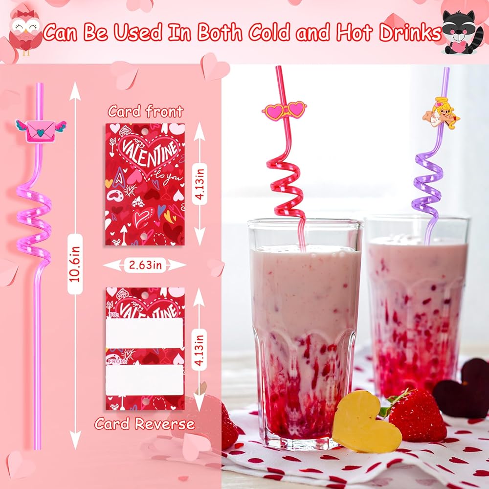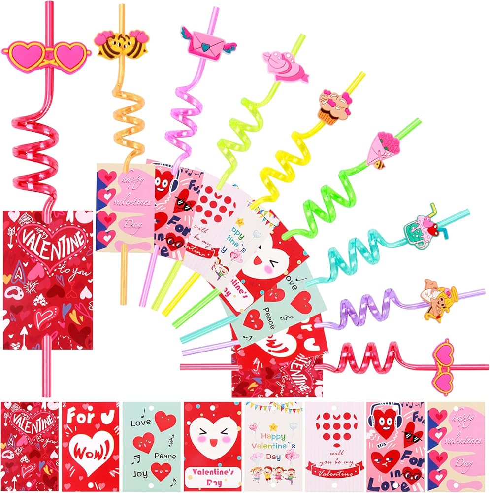 【مجموعة شفاطات بتصميم فريد من نوعه لعيد الحب】- سوف تحصل على 24 عبوة من القش المجعد بنمط عيد الحب في 8 أنماط تصميم مختلفة، 3 شفاطات في كل نمط و24 بطاقة تبادل لعيد الحب، جذابة ومبتكرة، ومناسبة للأطفال والكبار. اللون غني، لذلك يمكنه تلبية احتياجات الأشخاص الذين يحبون المصاصات ذات الألوان المختلفة. كميات وفيرة وتصميمات متنوعة لتلبية احتياجات الهدايا والحفلات، يمكنك أيضًا مشاركتها مع العائلة والأصدقاء والأطفال.