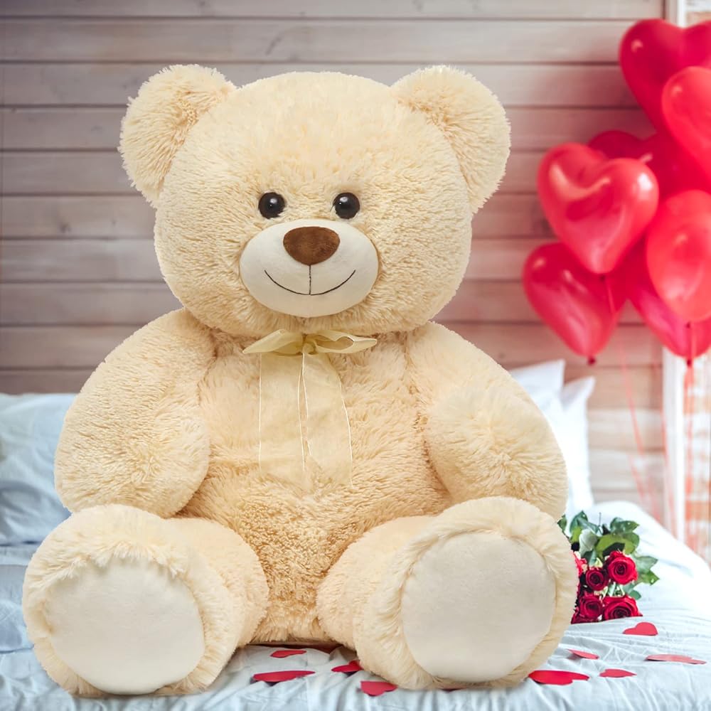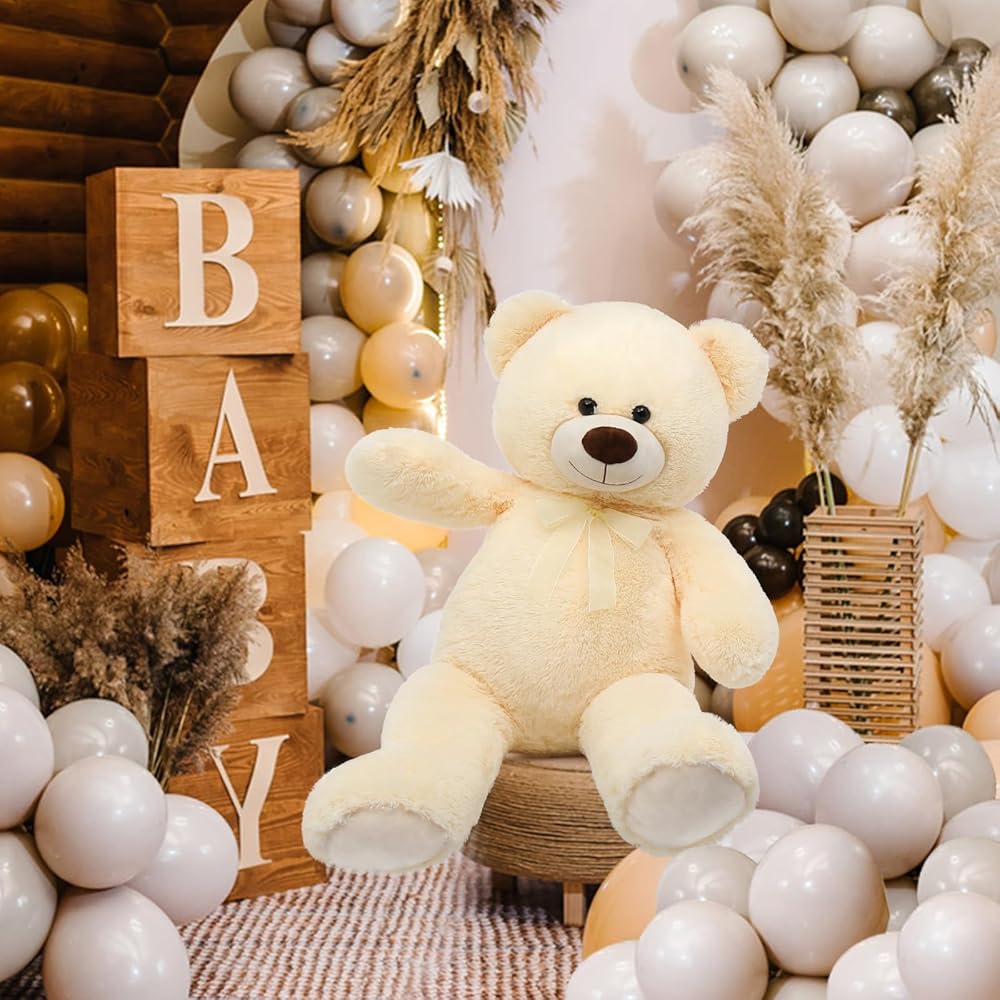 موريسموس العملاق تيدي بير محشوة الحيوان 3ft، 36in كبير تيدي بير، دمية دب كبيرة لديكور استحمام الطفل، لعبة الدب المحشو الناعمة للطفل عيد ميلاد عيد الميلاد صديقة هدية عيد الحب، بيج / كريم