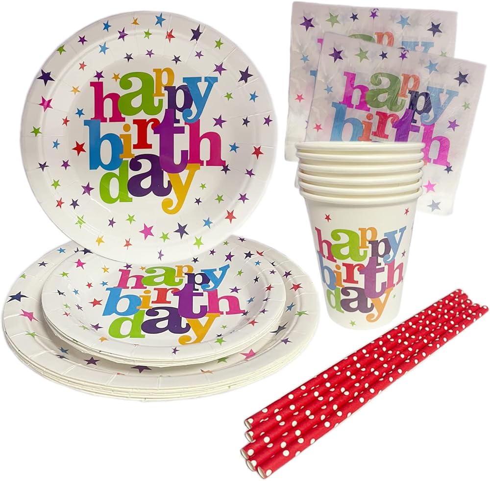 • تصميم الموضوع - تتميز هذه المجموعة بعناصر حروف عيد ميلاد سعيد ملونة. التصميم المطبوع بشكل جميل يخلق جوًا مريحًا وسعيدًا لحفلة عيد ميلادك.