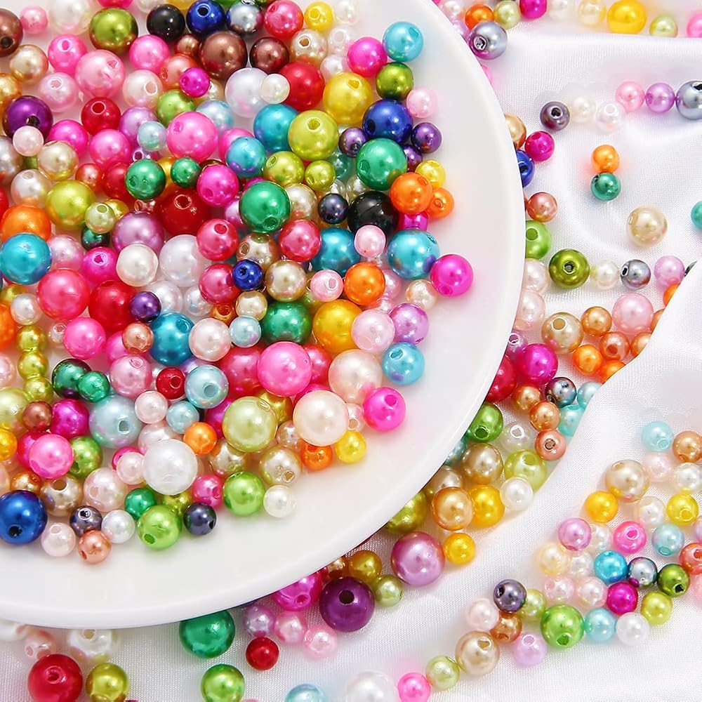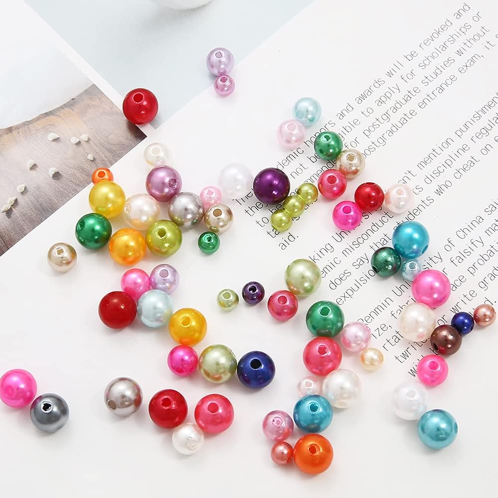 • Size:Plastic Pearl Beads are 4,5,6,8MM(0.15,0.19,0.23,0.31inch) in diameter.Hole: approx 1mm(0.04)