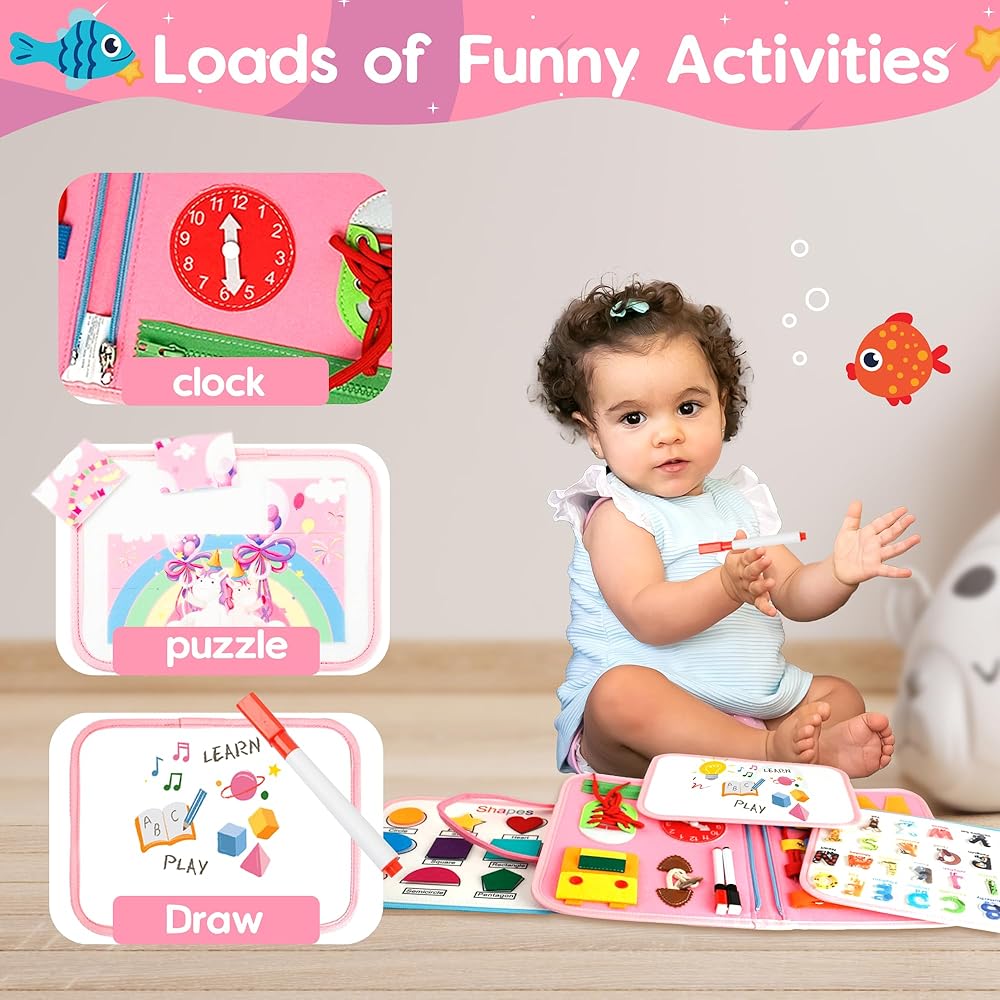 رائعة لتعلم مرحلة ما قبل المدرسة - تمت ترقية لوحة الأطفال المشغولة لدينا بأقسام أكثر مرحًا. يضيف خصيصًا ألعاب ألغاز الصور المقطوعة ولوحة فارغة يمكنك صنعها بنفسك. تعمل على تنمية خيال الأطفال وإدراكهم وإدراك الألوان وتعلم المهارات الأساسية للحياة. لوحة مشغولة للأطفال الصغار، لوحة مونتيسوري مشغولة، لوحة مونتيسوري مشغولة للأطفال الصغار.