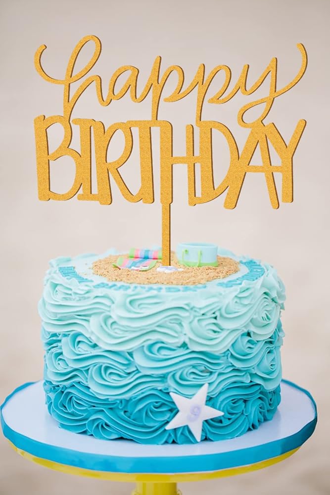 غلاف كعكة عيد ميلاد سعيد من MRAPPY - لوازم تزيين الكيك الخشبية لعيد الميلاد السعيد لدعائم كشك الصور (ذهبي)