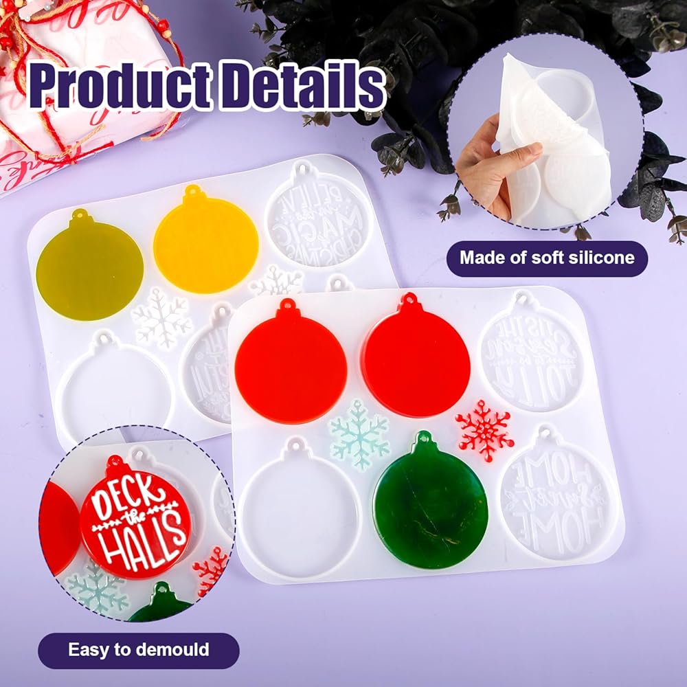 قطعتان من قوالب الراتنج لزينة عيد الميلاد، قالب سيليكون لعيد الميلاد، قوالب راتنج عيد الميلاد المستديرة مع حرف لمستلزمات الحرف اليدوية لشجرة عيد الميلاد