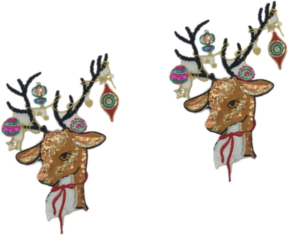 EXCEART التطريز التصحيح 2PCS الملحقات زينت شارة الملحقات ملصقات الشعار بقع الخياطة الحديد على ES للملابس بقع الملابس عيد الميلاد القماش المطرزة بقع