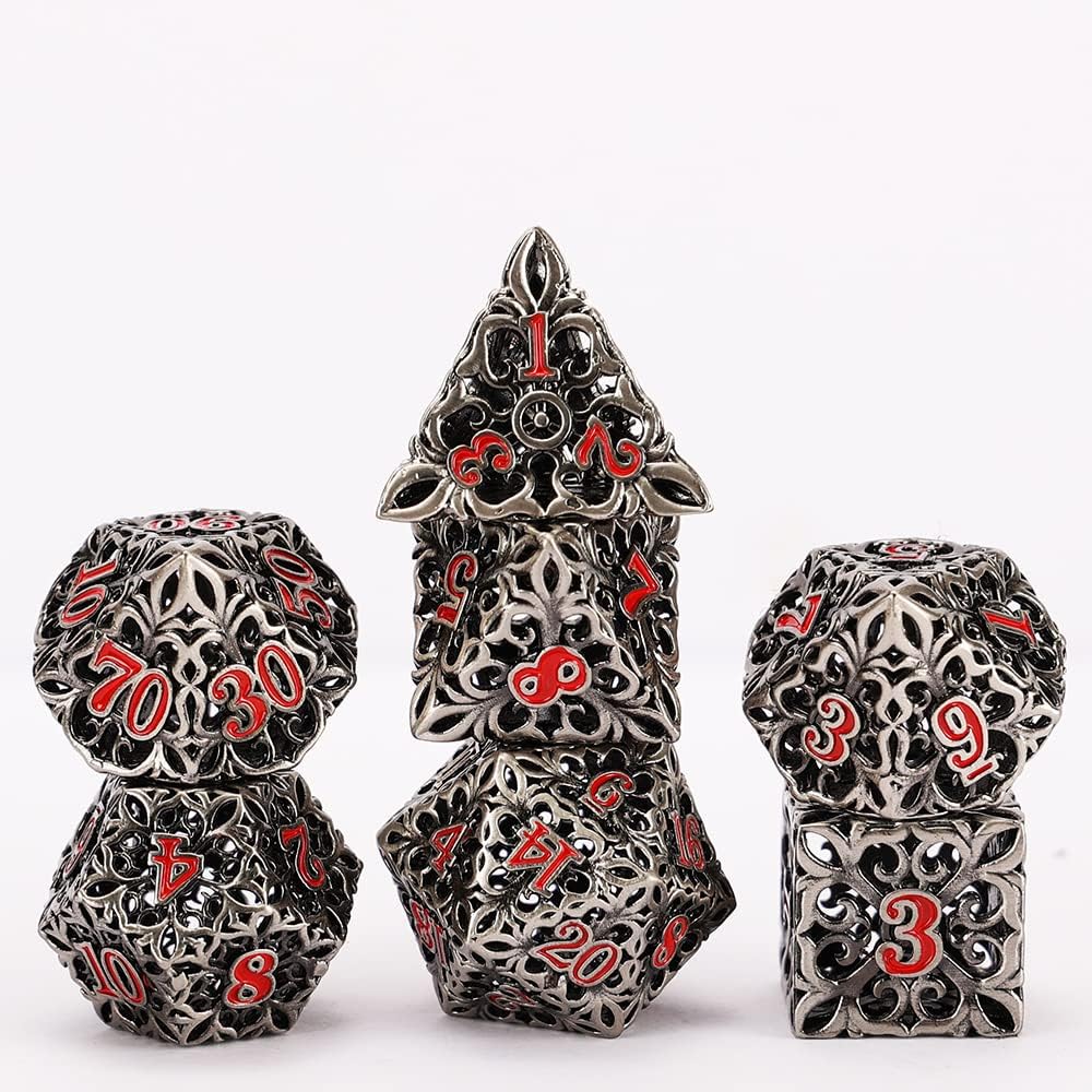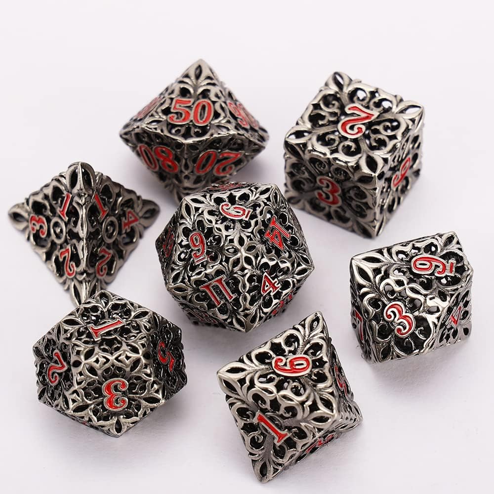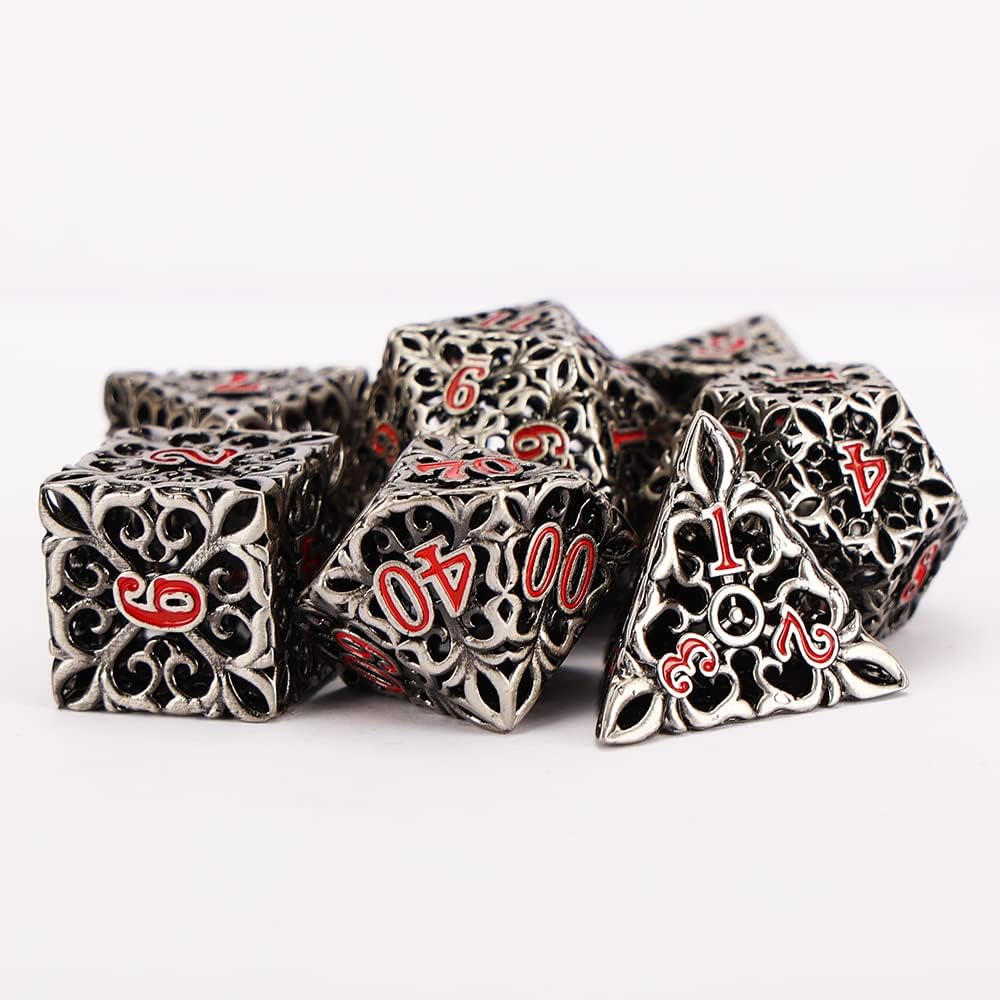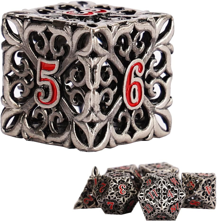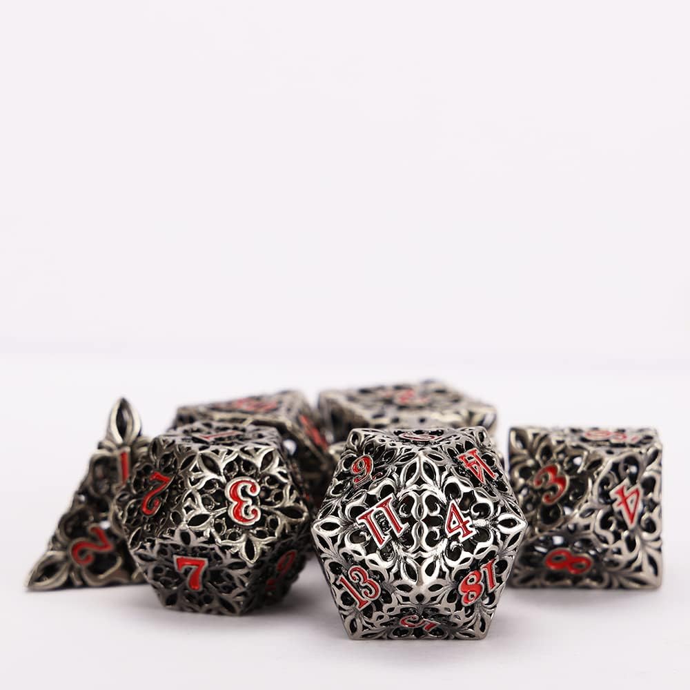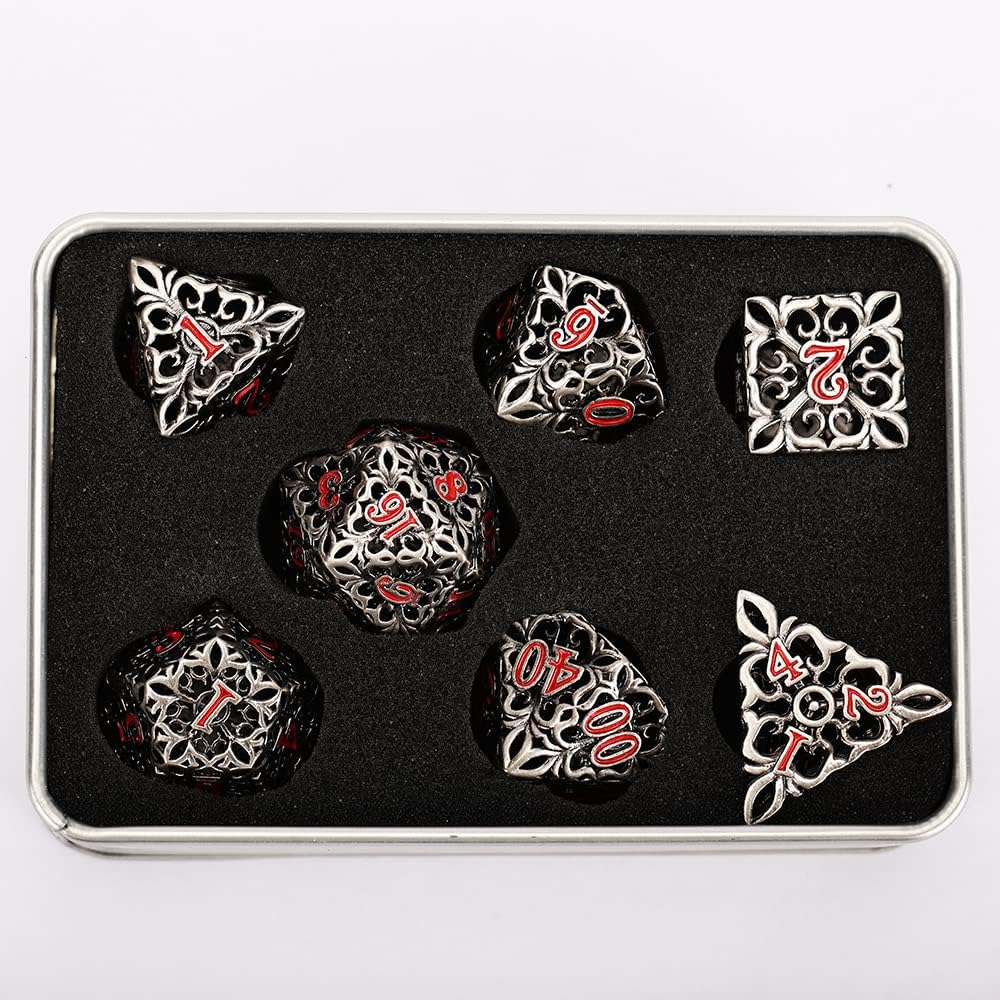 النرد المعدني DND مجموعة النرد D&D 7 قطع نرد متعدد السطوح الزنزانات المجوفة والتنينات الكبيرة من أجل MTG، لعبة لعب الأدوار RPG، Shadowrun وتعليم الرياضيات D20 D12 D10 D8 D6 D4 مع صندوق معدني