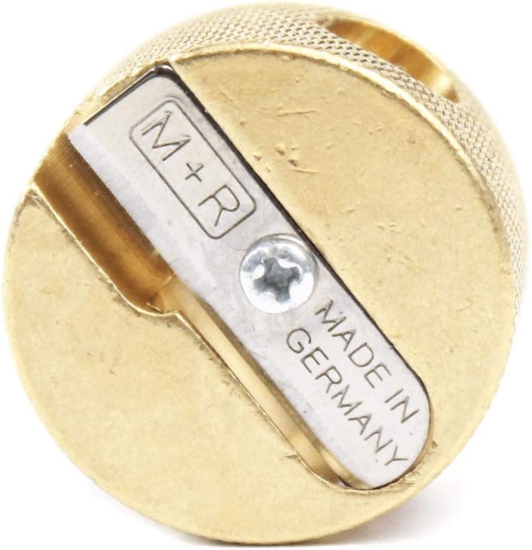 مبراة دائرية من النحاس الصلب بفتحة مزدوجة صغيرة وصغيرة الحجم إضافة رائعة لصندوق الفن الخاص بك، المبراة ذات الفتحة المزدوجة مثالية لأقلام الرصاص القياسية إلى الأكبر حجمًا.