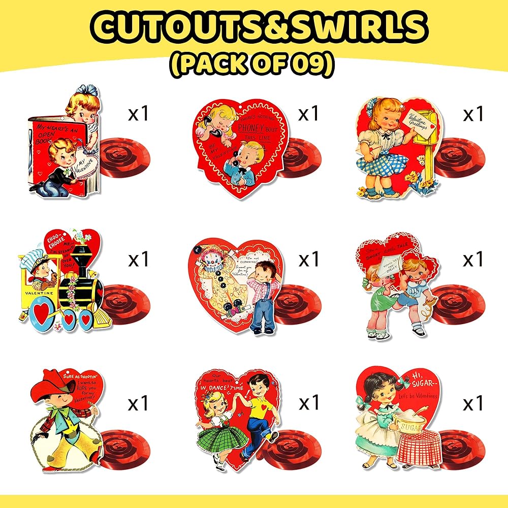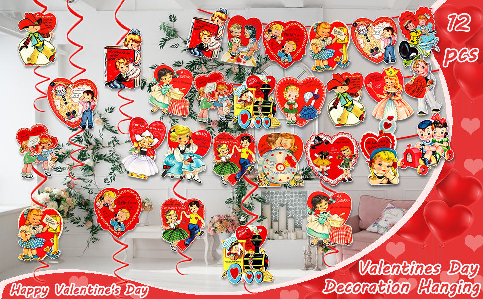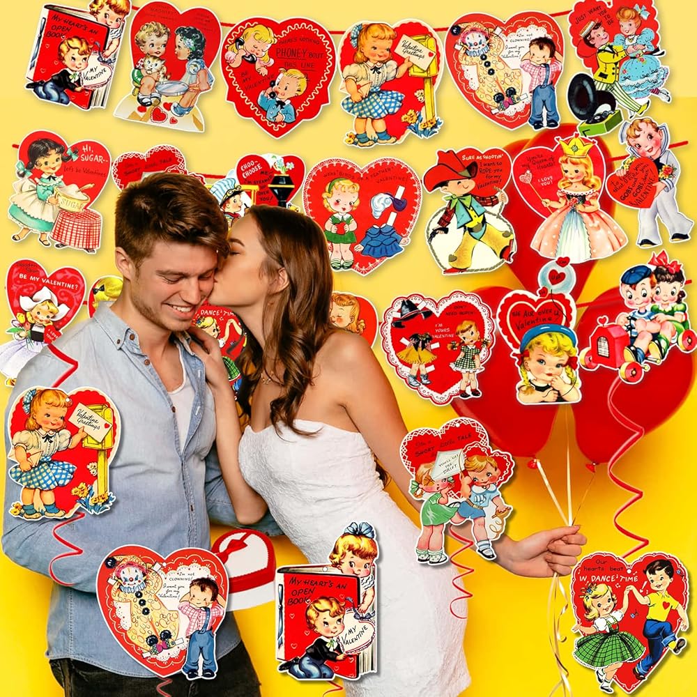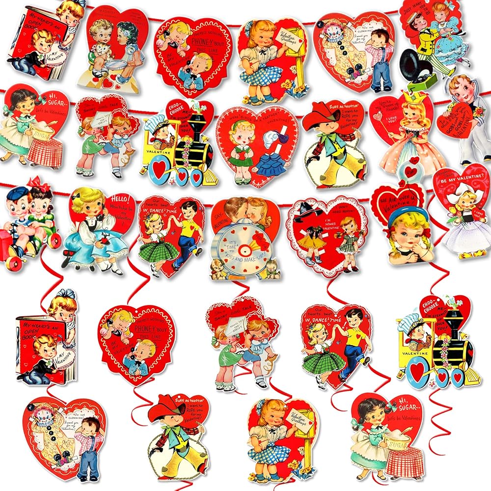 مجموعة ديكورات عيد الحب العتيقة من xituodai تتضمن 3 قطع لافتة عيد الحب مع 20 نمطًا من بطاقات التعليق و9 قطع دوامة معلقة، لوازم حفلات عيد الحب التقليدية