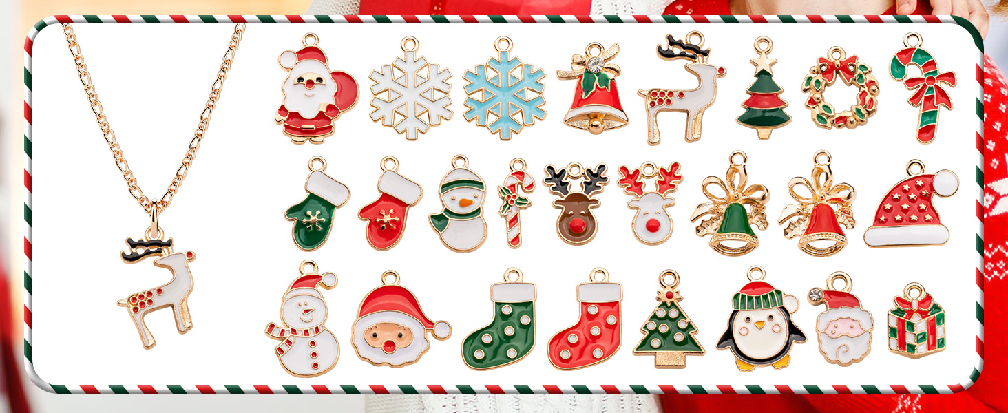 • 🎄🎄【رائعة لصنع مجوهرات عيد الميلاد!】-- اصنعي للأطفال بعض الأساور/القلائد/الأقراط اللامعة مع حليات المينا الذهبية لعيد الميلاد، وسيحبون إظهار حبهم على هديتهم منك في عيد الميلاد! هناك 25 نوعًا من الأنماط، احصل على 4 من كل منها و100 قطعة إجمالاً، كمية كافية لك لإنشاء حرفة جميلة.
