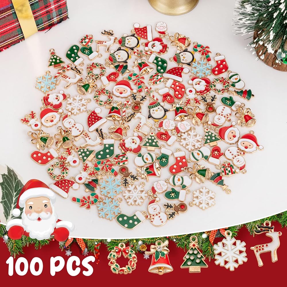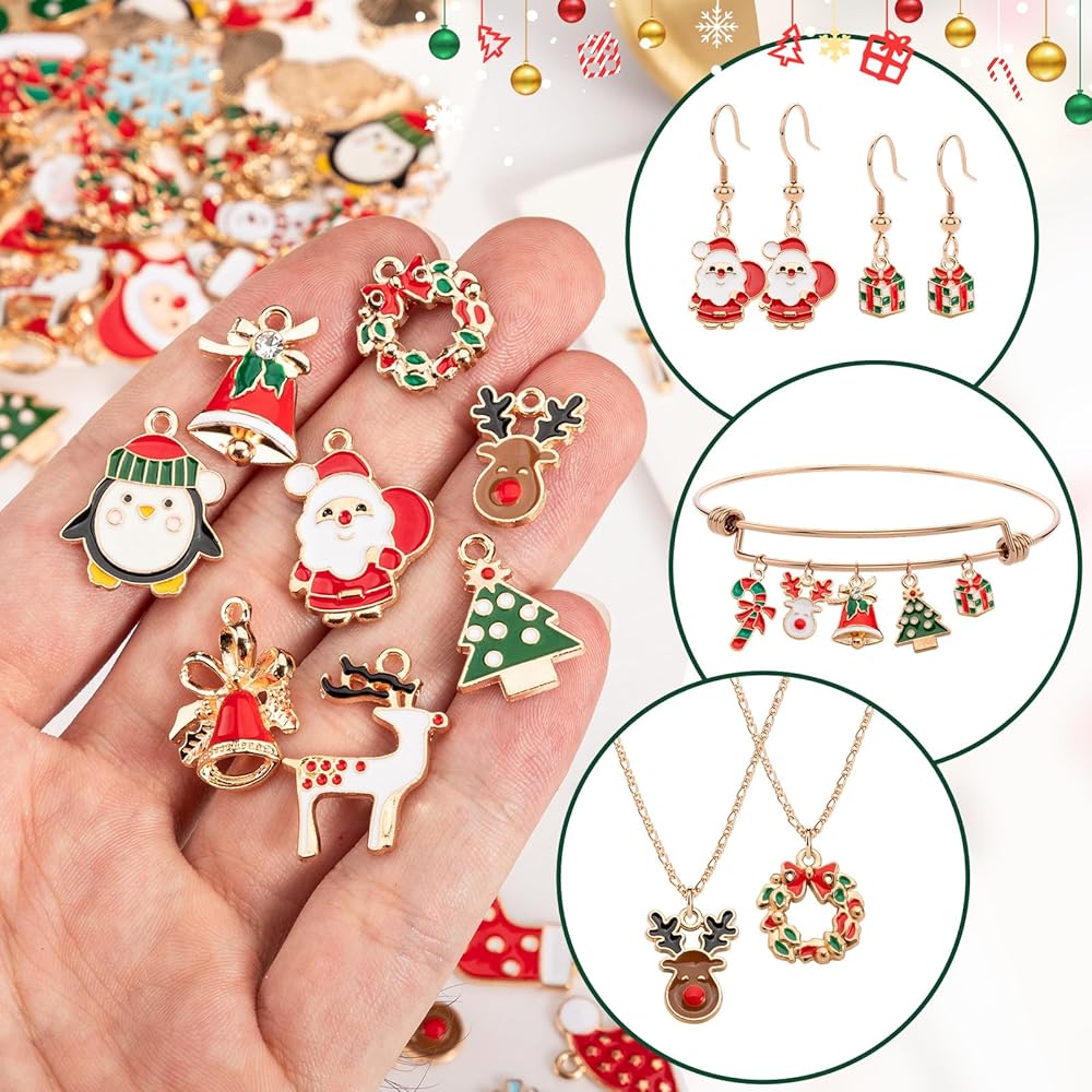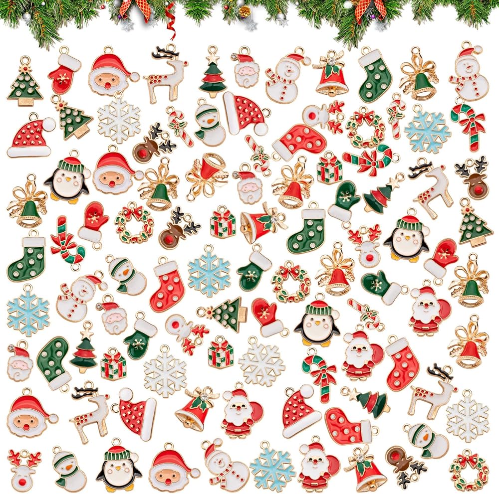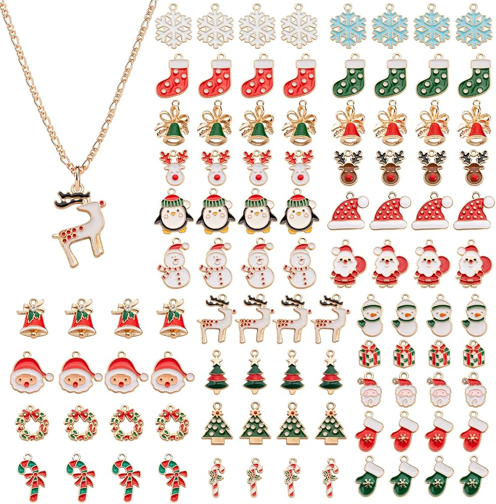 Noverlife 100 قطعة من سحر عيد الميلاد المعدني DIY، دلايات مجوهرات عيد الميلاد المينا الذهبية لصنع المجوهرات، سبيكة عطلات الشتاء سحر القرط سوار قلادة مطلية بالذهب سحر فني DIY