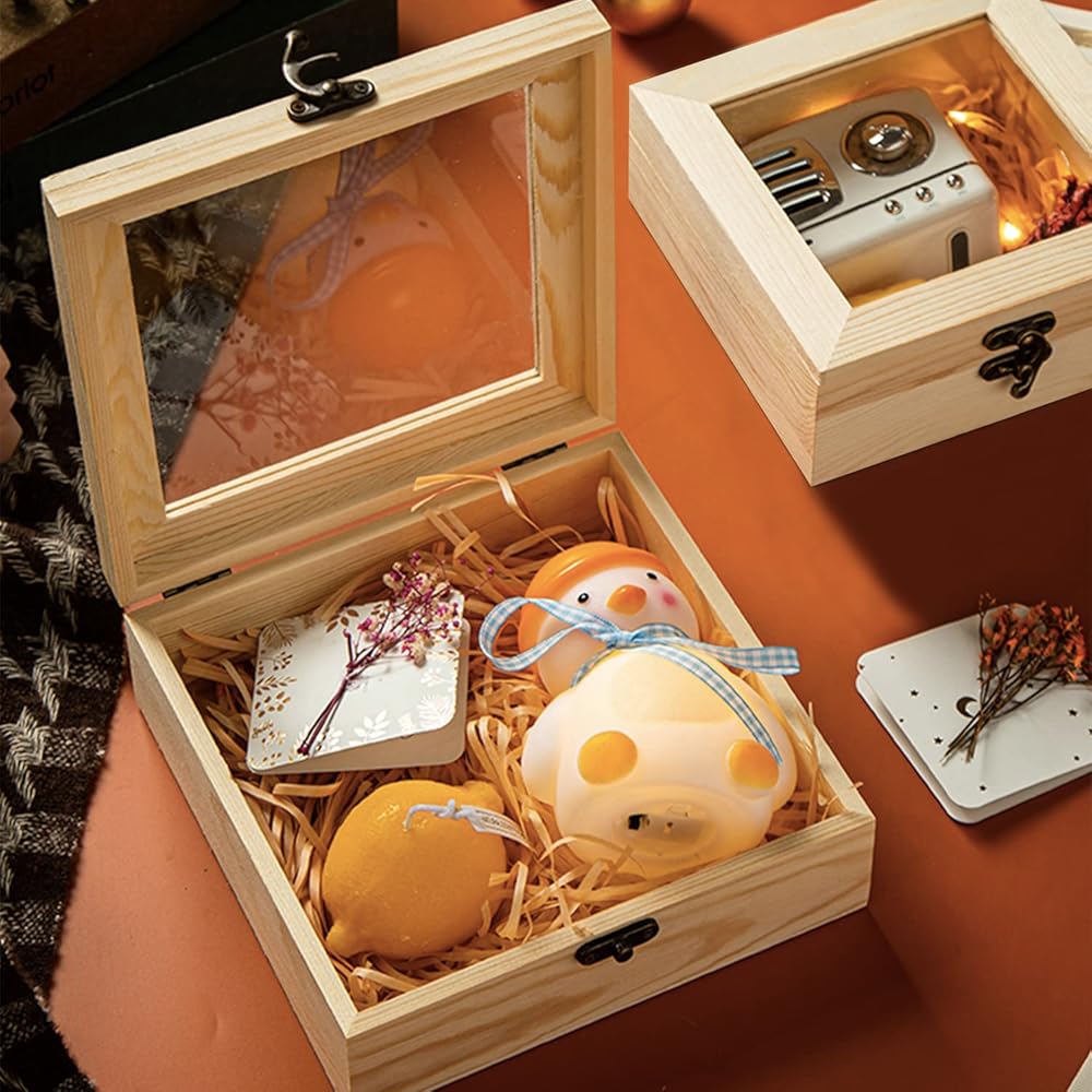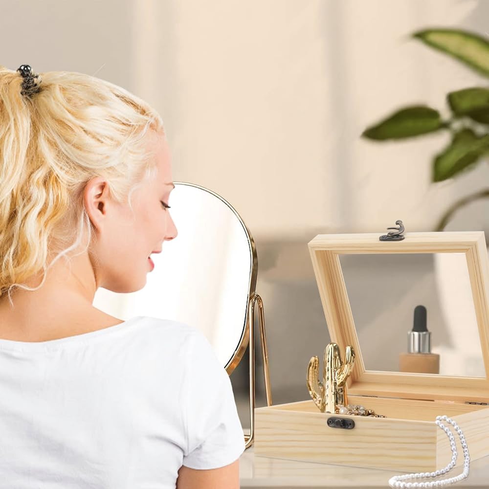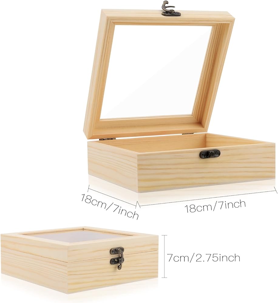 【مع مفصلات متينة ومشابك أمامية قديمة 】- تم تصميم كل صندوق تخزين خشبي غير مكتمل بمفصلات متينة ومشابك أمامية قديمة. تساعد النافذة الزجاجية الشفافة على إعادة تنظيم الأشياء الداخلية بسهولة. وإضافة المزيد من الغموض والديكور للمجوهرات الداخلية.