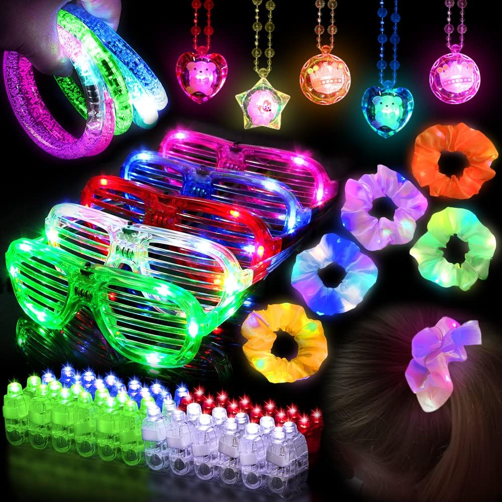 لوازم الحفلات المتوهجة في الظلام من Simnuply، هدايا عيد الحب للأطفال، 68 قطعة من لوازم حفلات النيون، هدايا الحفلات المضيئة للأطفال مع أضواء الأصابع، نظارات مضيئة، ربطات شعر LED، قلائد نيون، أساور متوهجة لعيد الميلاد وعيد الهالوين N