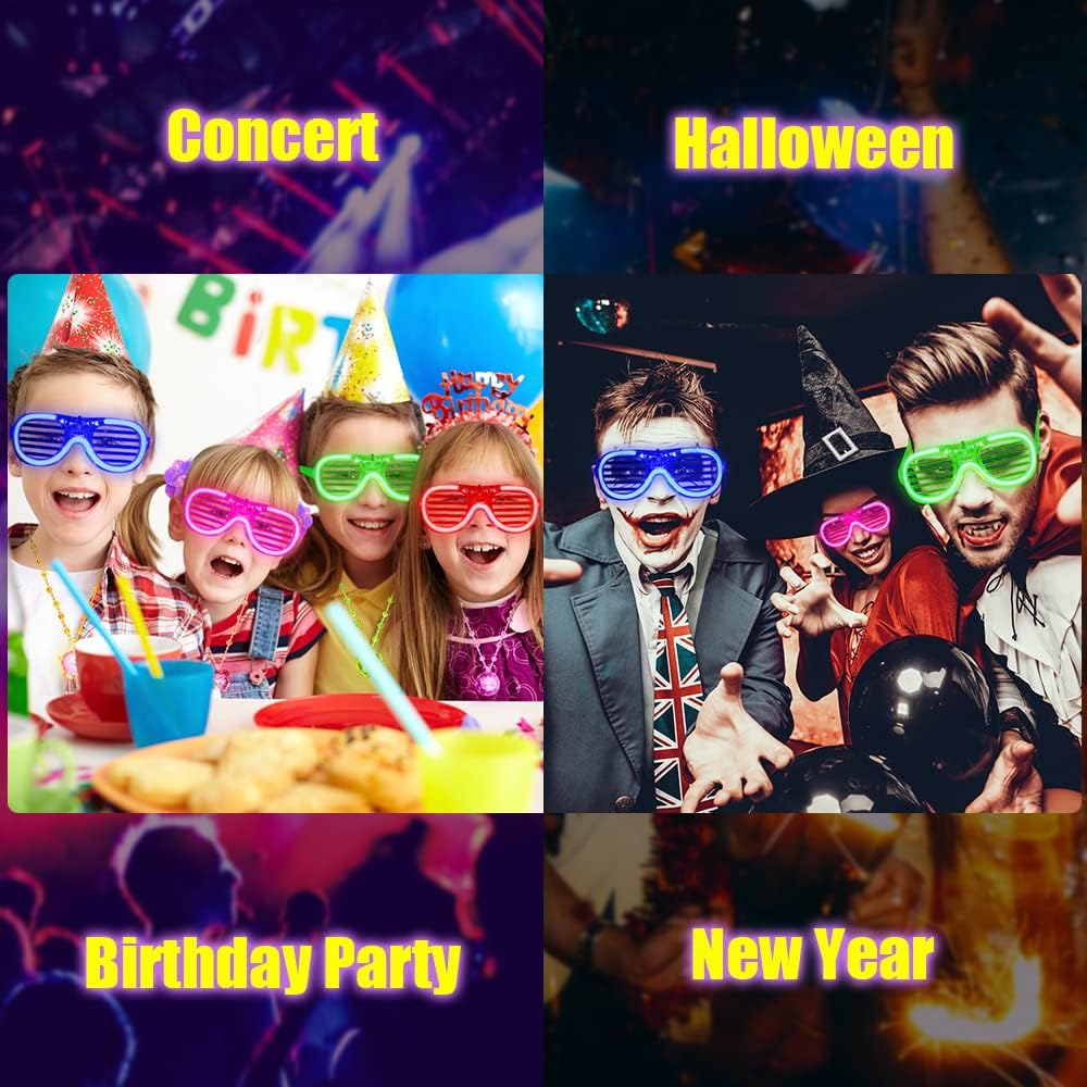 【نظارات متوهجة عالية الجودة】: مصنوعة من بلاستيك البولي كربونات عالي الجودة الصديق للبيئة، تجربة الارتداء لكل من البالغين والأطفال مريحة للغاية. لقد أدى الإطار بأكمله إلى تألق الشرائط بشكل خفيف، وسيظل دائمًا محور الحفلة. تحتوي النظارات على ثلاثة أوضاع للضوء. لا وهج ولا أشعة فوق بنفسجية، ارتديه بثقة.