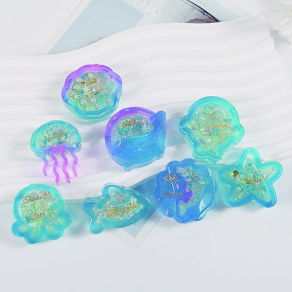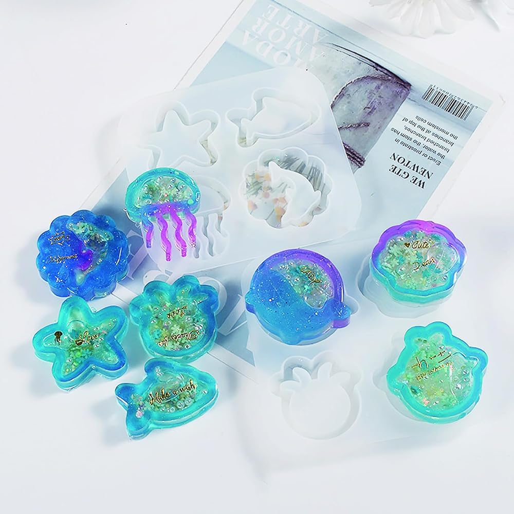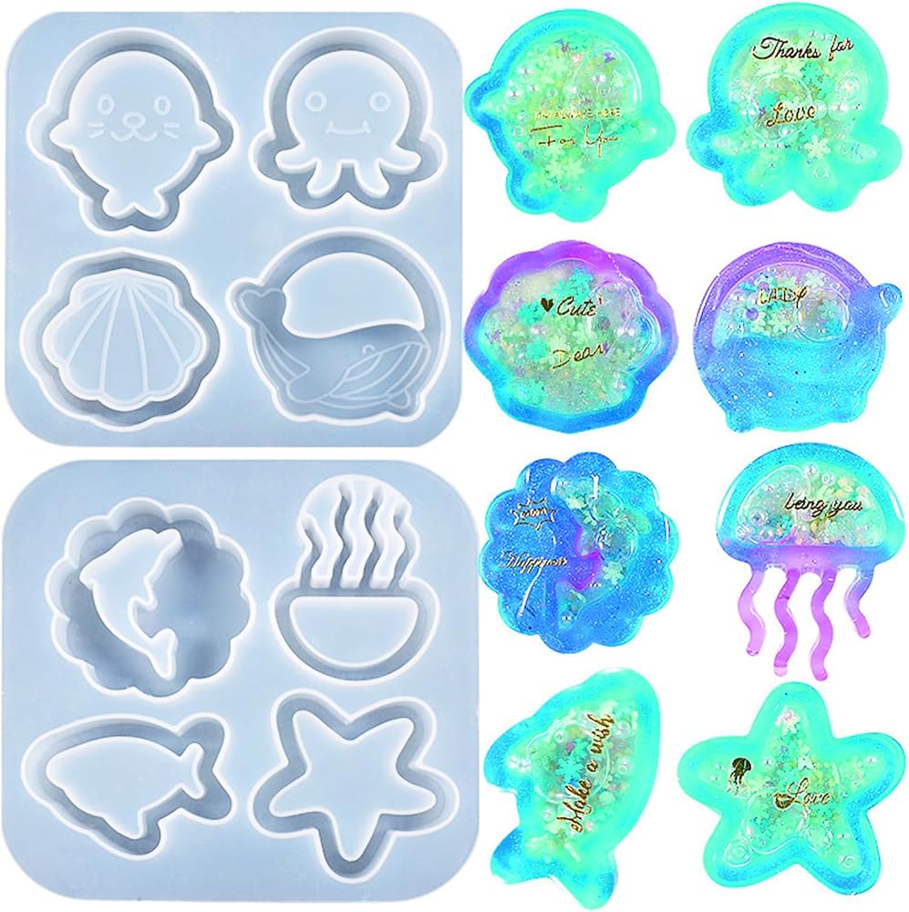 Mulukaya 2 قطعة حيوانات المحيط بالأشعة فوق البنفسجية إيبوكسي الرمال المتحركة الراتنج قوالب الصب قنديل البحر صدف نجم البحر الحيتان الأخطبوط الدلافين قوالب السيليكون المجوفة لسلسلة المفاتيح اليدوية اليدوية مشروع القلادة
