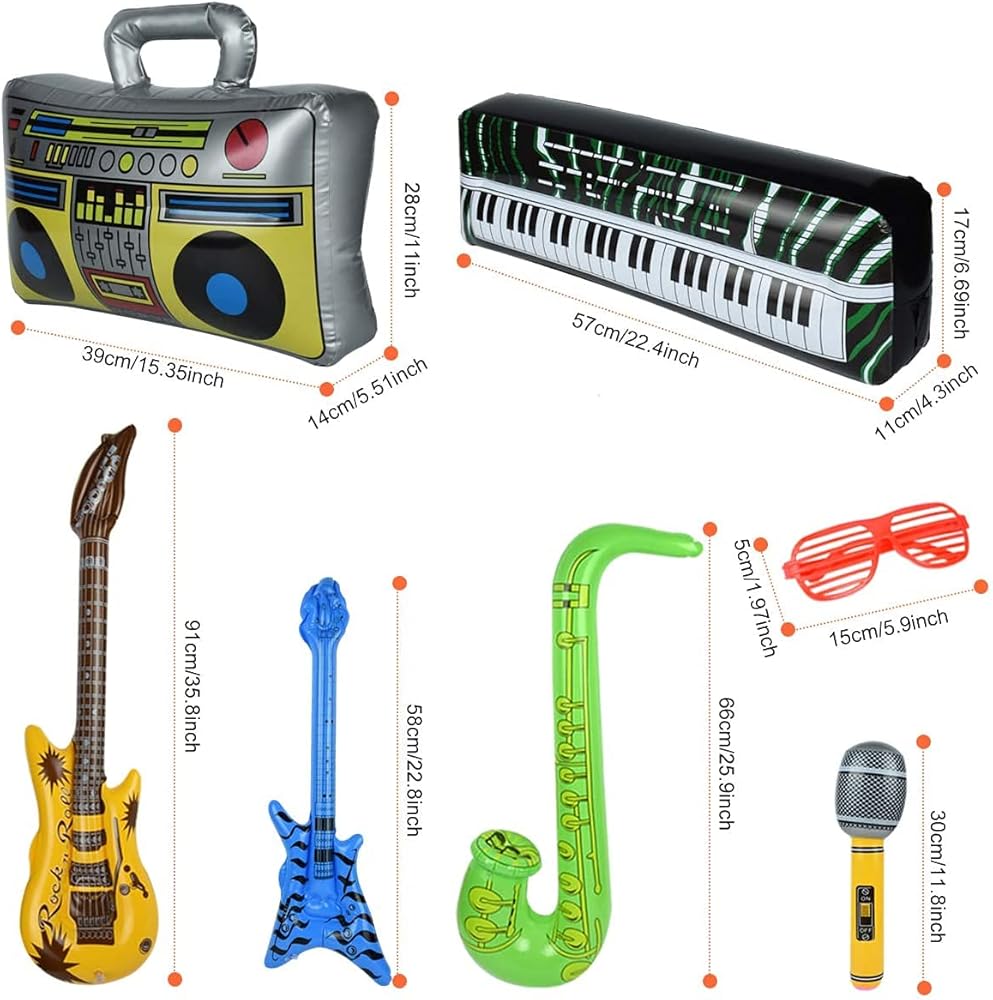 مجموعة قيمة فائقة: تتضمن مجموعة الأدوات القابلة للنفخ هذه 3 جيتار قابل للنفخ و3 ساكسفون قابل للنفخ و6 نظارات قابلة للنفخ و4 ميكروفونات قابلة للنفخ و1 راديو صغير قابل للنفخ ولوحة مفاتيح قابلة للنفخ و3 مضخة هواء قابلة للنفخ.