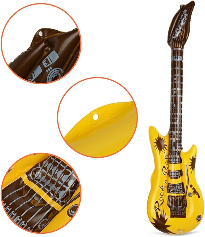 حجم رائع: الجيتار القابل للنفخ 91 سم/35.8 انش، لوحة المفاتيح القابلة للنفخ 57 سم/22.4 انش، الساكسفون القابل للنفخ 66 سم/25.9 انش، فهي قريبة من الحجم الحقيقي وأكبر من معظم الألعاب المشابهة الأخرى، أكثر جاذبية.. الاستخدام: مجموعات الجيتار القابلة للنفخ مثالية لحفلات أعياد الميلاد أو الزفاف أو الهالوين أو كرات الأزياء أو كدعائم لكابينة التصوير. الخ