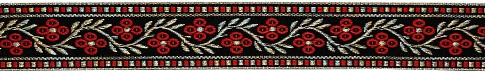 JL 109 Jacquard Metallic Silver Leaf and Grey floral on black ribbon webbing trim, 1-3/16” ( 30 mm) x 5 yards for sewing crafting home decor, wedding, party, gift wrapping, bag strap, hair bands, pillow cases, towels, curtain