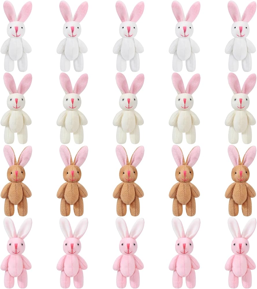 20 قطعة من الأرنب المخملي الصغير على شكل أرنب صغير مقاس 2.4 انش، دمية أرنب صغيرة محشوة ناعمة، ألعاب حيوانات محشوة لعيد الفصح وكعكة عيد الميلاد وحفلات الزفاف وهدايا الحفلات