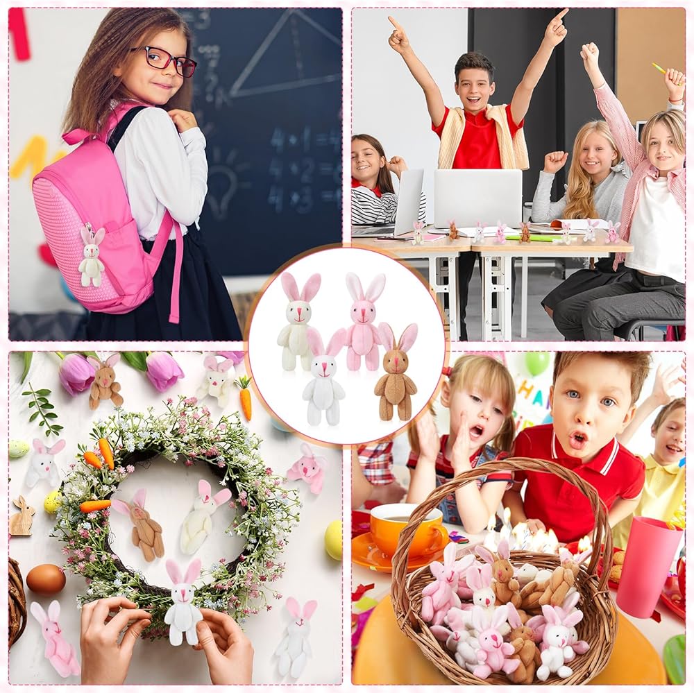 مادة ناعمة وموثوقة: الأرانب المفصلية الصغيرة مصنوعة من القطيفة الناعمة ومحشوة بالبولي بروبيلين، وهي مريحة الملمس، وخفيفة الوزن وقابلة للحمل، يمكنك حتى وضعها بجوار وسادتك، وسترافقك خلال ليالي لا حصر لها