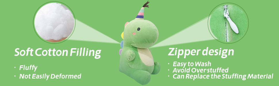【سهلة الصيانة】ألعاب الديناصورات المضحكة هذه مصممة بسحاب مخفي. ديكور منزلي جميل لمنزلك، يمكنك وضعه في غرفة النوم وغرفة المعيشة وما إلى ذلك. عندما يتسخ الديناصور السمين، يمكنك خلع ملابسه وإخراج القطن المحشو ثم وضعه في الغسالة.