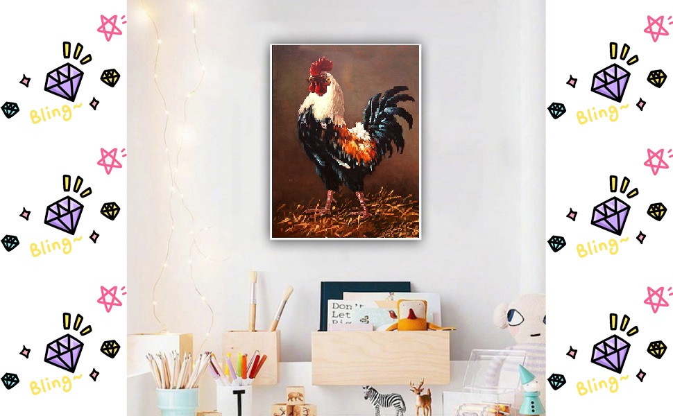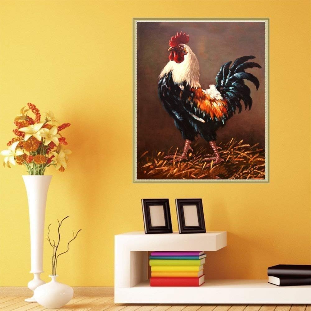 SUNKOO DIY لوحة ألماسية 5D حسب مجموعة الأرقام، مجموعات طلاء ماسية كاملة الحفر على شكل ديك الماس فن حجر الراين صور مطرزة لديكور الحائط المنزلي، 12 × 16 بوصة