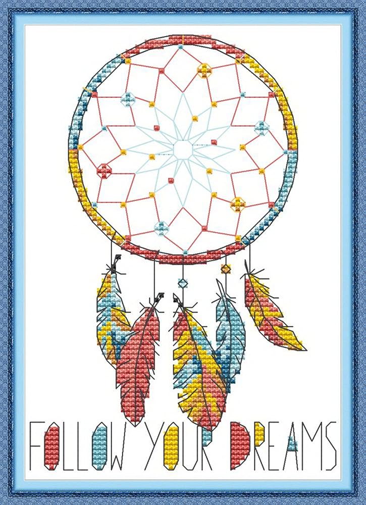 مجموعة غرز متقاطعة من Joy Sunday 11CT صائد الأحلام 8.3 بوصة × 11 بوصة أو 21 سم × 28 سم أنماط سهلة للتطريز للفتيات والحرف اليدوية DMC لوازم الخياطة المتقاطعة سلسلة الحياة الثابتة