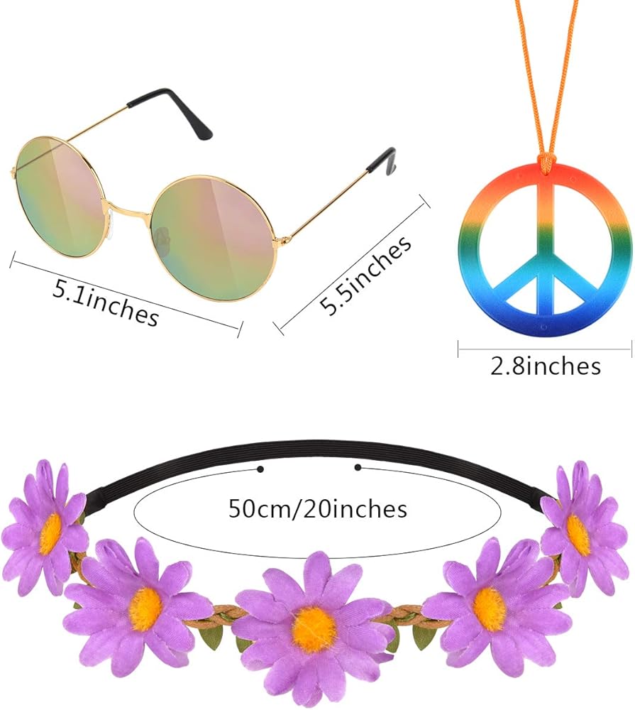 Multiple color items are enough for your hippie dressing up and share them with your family, children, friends and other, show the hippie spirit of 60s 70s, make you the focus in the theme party, and also a nice gift choice for your friends and families.