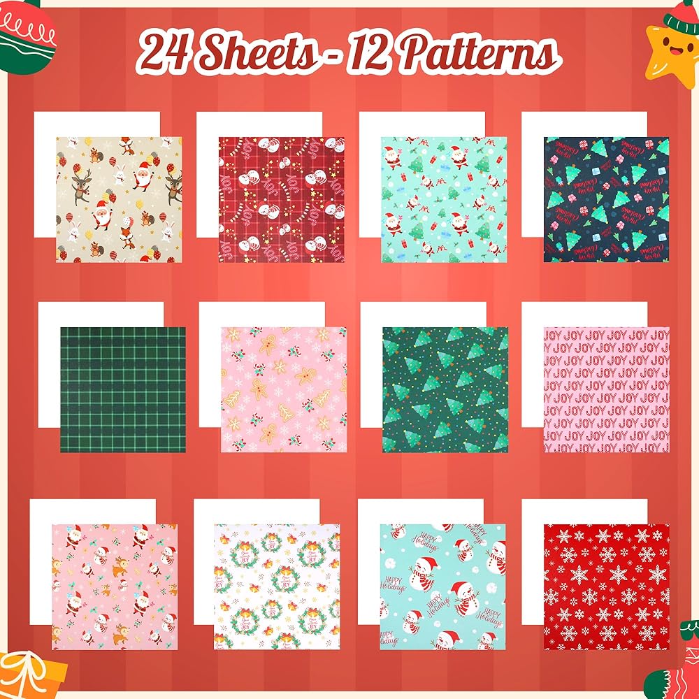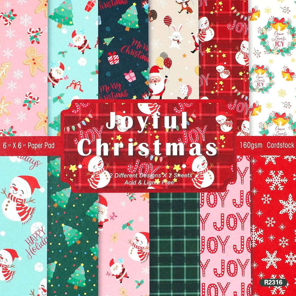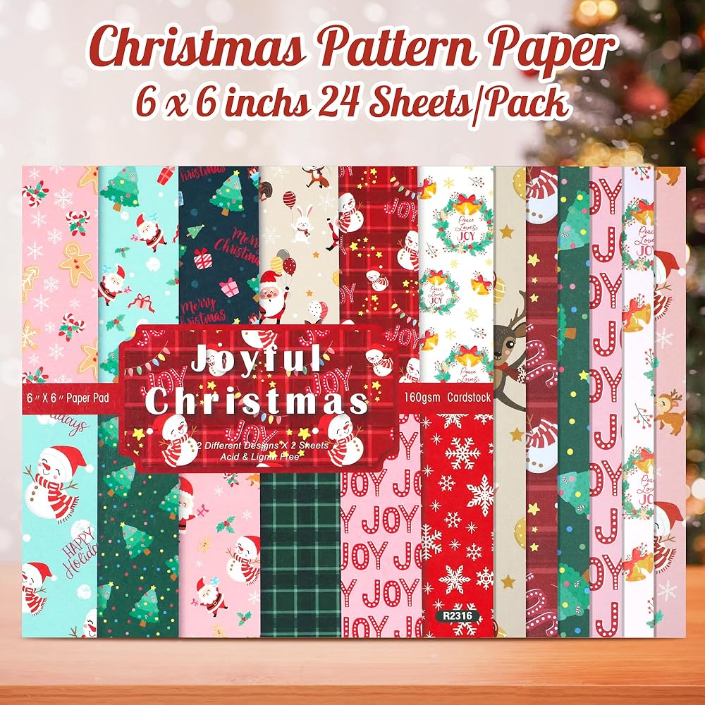 مجموعة مذكرات عيد الميلاد مقاس 6 بوصات من PUIKSXER، ورق قصاصات نمطي، 24 ورقة من ورق الحرف اليدوية الزخرفي العتيق من جانب واحد، لوازم زينة يومية للمخططين DIY، ألبوم فني مجمع