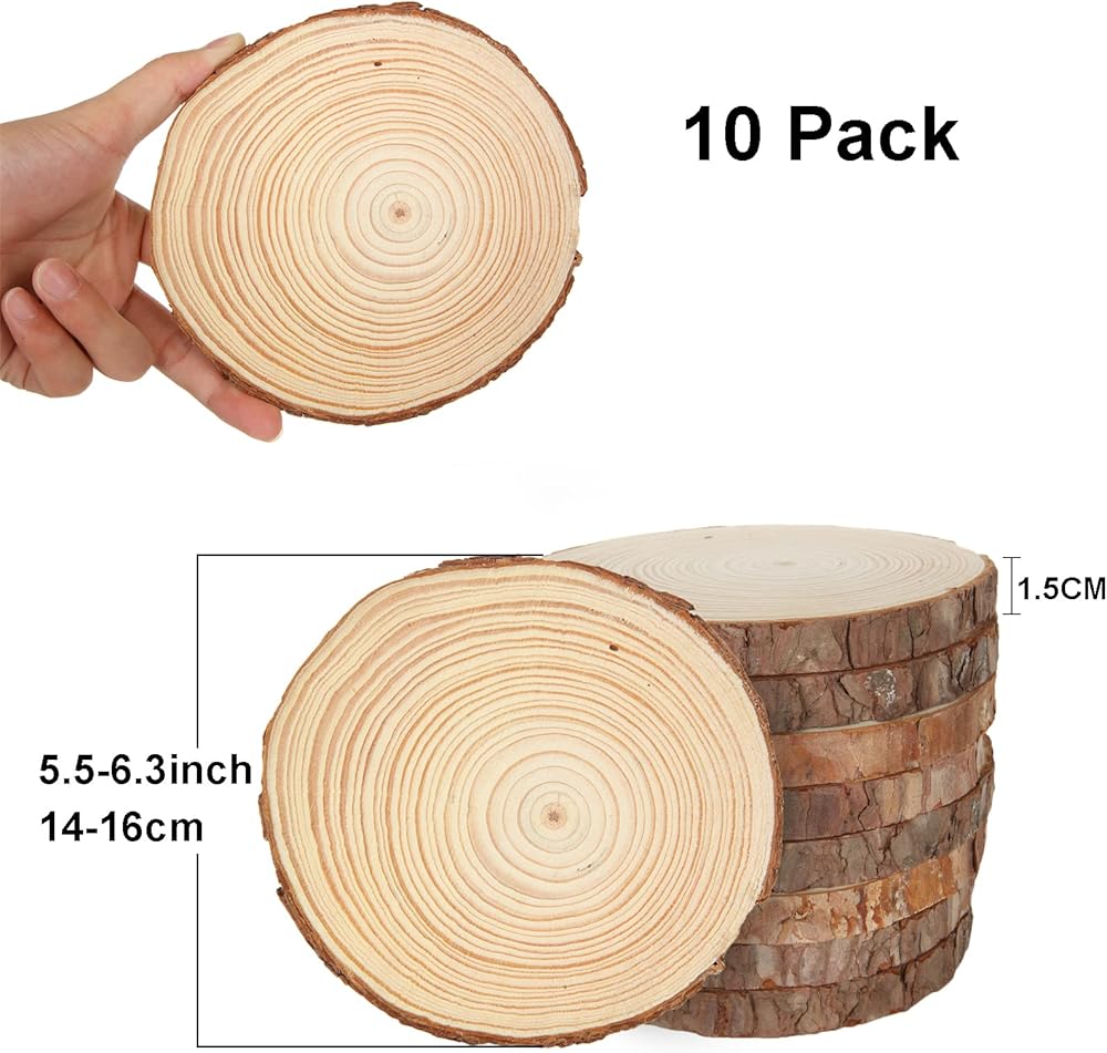 سيه شرائح خشبية طبيعية - 10 قطع من الخشب غير المصقول مقاس 5.5-6.3 انش، دوائر خشبية للفنون وشرائح الخشب وزينة الكريسماس والحرف اليدوية