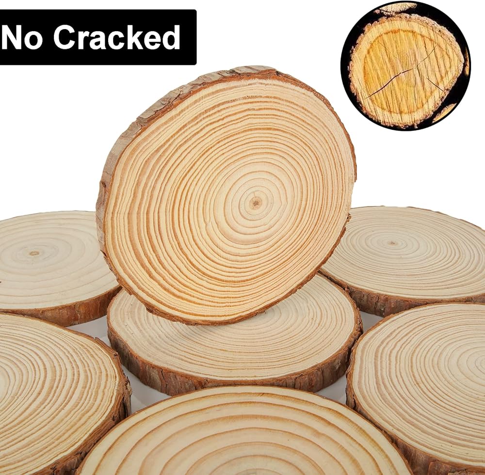 آمنة ومتينة - شرائح الخشب مصنوعة من خشب الصنوبر الطبيعي مع اللحاء، وليس من السهل كسرها، وتم صقل كل شريحة لجعل السطح أملسًا وآمنًا بما يكفي للاستخدام.
