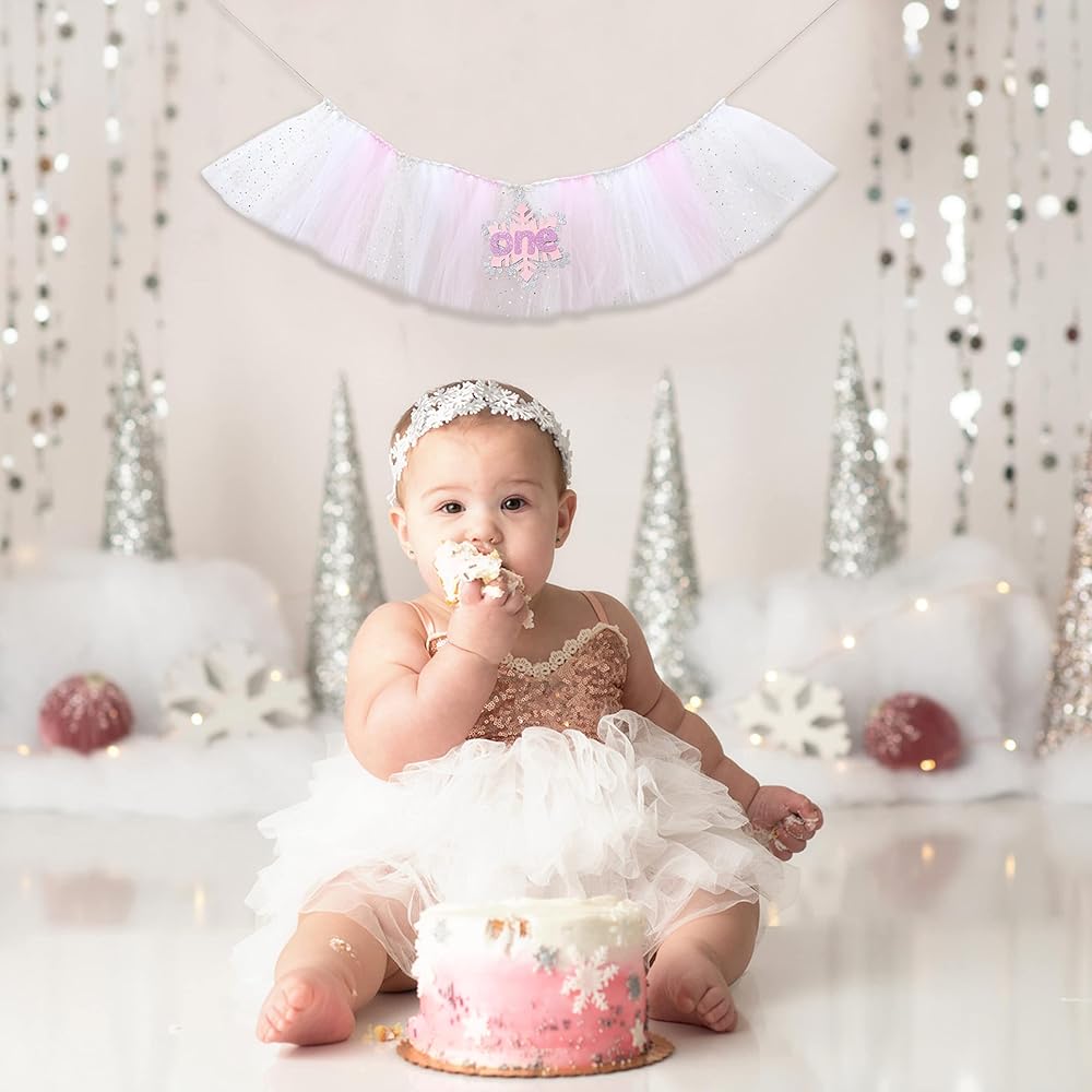 • لافتة ندفة الثلج - لافتة الكرسي العالي هذه هي الإضافة المثالية لعيد ميلاد طفلك الأول! يتناسب تمامًا مع موضوع "ندفات الثلج الشتوية" وسوف تحبه حقًا. سهلة التجميع ومتينة حقًا وذات جودة رائعة.